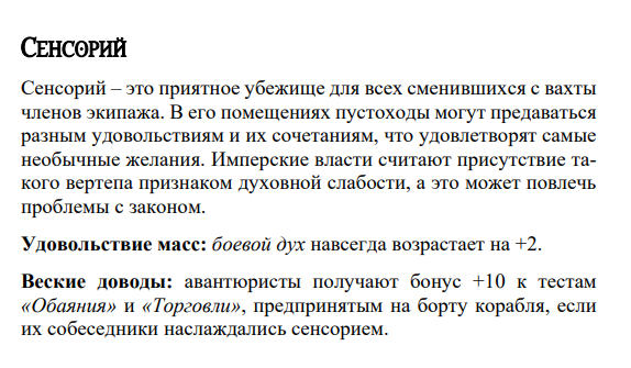 Вообще интересно, сколько у нас помещений на корабле и на сколько очков закачивали относительно ролевки. Есть корабельный Храм, судя по размерам культистского, есть второй, упоминается, но не показывается медицинская палуба (отдельный компонент), также мануфактории и варп-секстант. Как будто что-то еще было