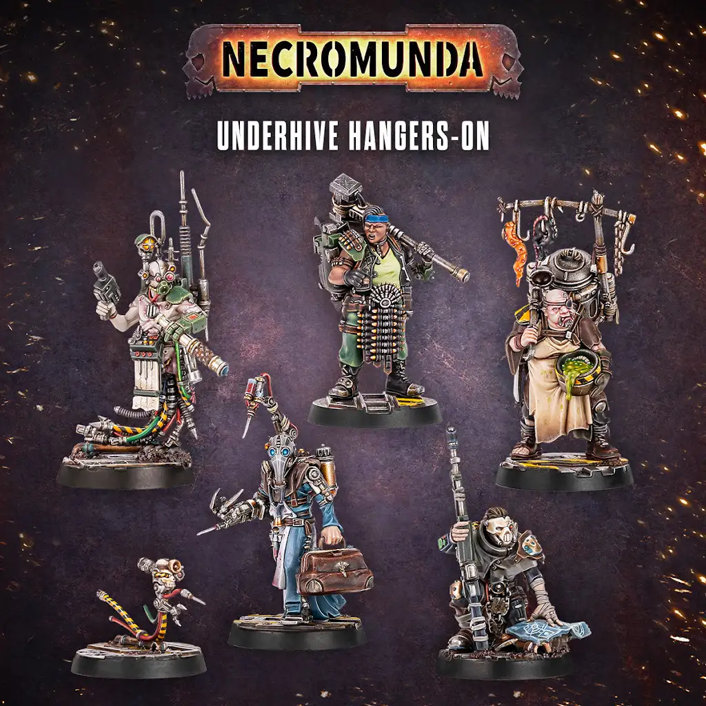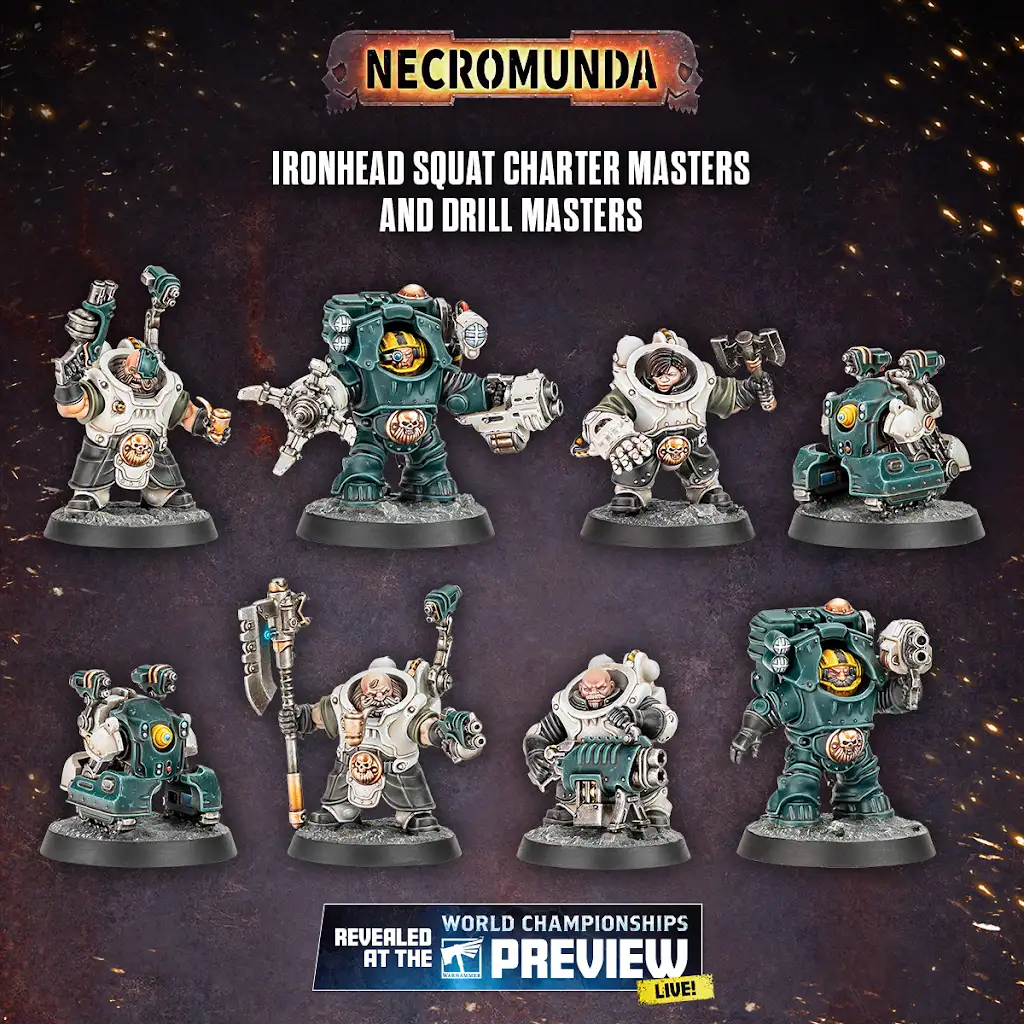 Bring their hard-earned expertise into Necromunda with a new pack of Charter Masters and Drill Masters, containing two Exo Masters, two Charter Masters, two Drill Masters, and two Techmite Autoveyors. Each model is a single-pose plastic miniature, with three head options for the Drill Masters and two for the Exo Masters.