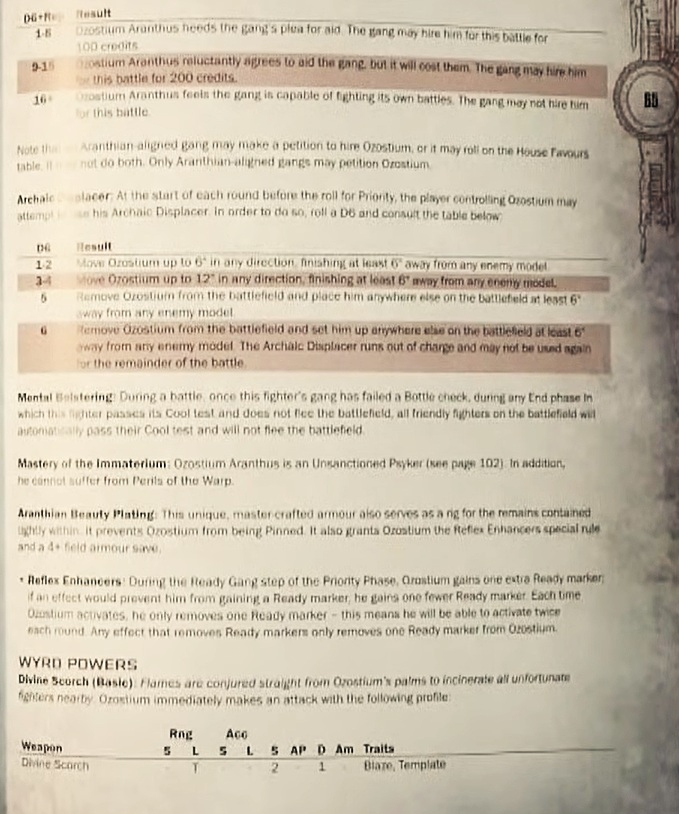 Aranthus can activate twice per turn and is among the deadliest characters in Necromunda, with martial skills and psychic abilities far in excess of regular humans.