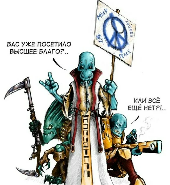 >>1144675 Не-не не, не так было. Так вылупились акт Лунтик и такие "давайте дружить!". Получили в пиздак от всего кого можно было, опытным путем выяснили что демоны это не враки, а варп порча это не тупо ОРВИ, и потому заматерели. Технически тау тупо проходят тот же путь, что и человечки. Тащемта два сапога пара, просто у одних во главе золотой мужик, а у вторых группа мужиков