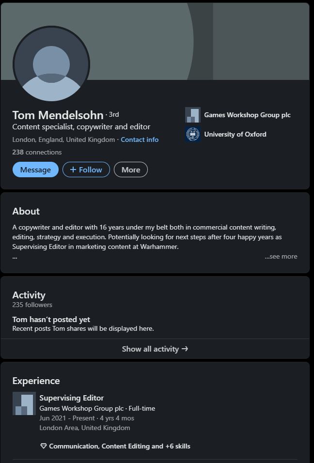 >>1144572 (OP) Помню как читал описание офицеров железных воинов и рофлил с них. Типо в них набирают самых эффективных менеджеров, которые лучше всех решают задачи. А по факту это вся их эффективность это мясные штурмы несмотря на потери в живой силе. Более сложные тактики им недоступны для понимания.