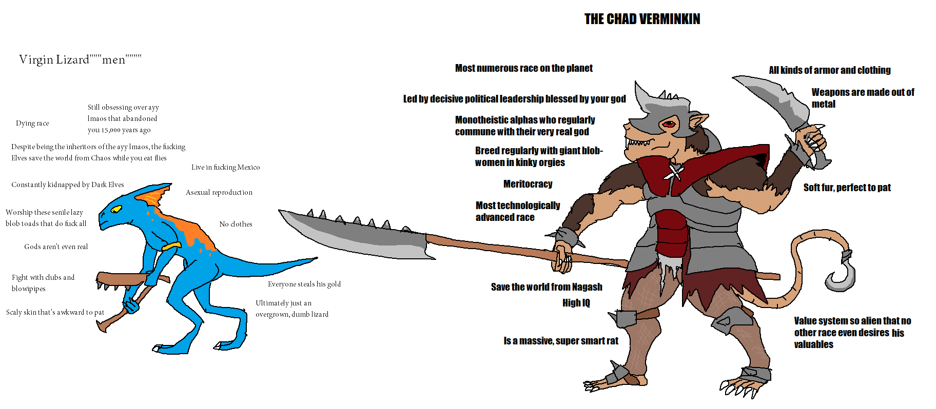 >>1144711 >Ну во первых Тау тоже могут расти в рамках касты, а другого и не хотят. "- Да у вас гоев низших каст в принципе не пускают во власть! - А им это не нужно! Не хотят! Они единоначалие блюдут! Уууу, тоталитарная импераха!" То есть что власть залочена исключительно за представителями высшей г'ассы с феромонной железой и пейсами, а все остальные - их бесправные шабесгои - это ничего особенного?! Это как если бы Лорды Терры состояли исключительно из кустодесов (а чё, они все образованные фелосафы и поэты, высшая каста!), а все прочие люди сосали бы хуй без шансов. А между тем, в реальном империуме юный псайкер может дослужиться до лорда Терры от астра телепатики, любой хуй с соображалкой и талантами может набиться в свиту инквизитора, потом стать аколитом -> инквизитором -> лордом -> заседателем в лордах Терры. Новобранец может дорасти дло лорда милитанта, чинушник - до лорда администратума, луннопопик из церковного хора - до эклезиарха. У механек только туго, потому что генерал-фабрикаторы живут тысячелетиями, редко сменяются. Зато можно стать ультра гига архимагосом Марса, советником Фабрикатора. Маленькие шансы? Только в теории можно? Во-первых, а как ты хотел, планет в имперахе - миллион, а должность Лорда Терры от организациянейм - одна на весь империум. Во-вторых, у тау из обыденных низших каст шансы пролезть во власть еще меньше, НОЛЬ. >>1144711 Где можно прочитать про быт простой гуэвеса септ Т"Верь? Они точно там не впахивают по-стахановски на строительстве коммунизма-высшеблагизма наравне с двужильными гномами касты земли?