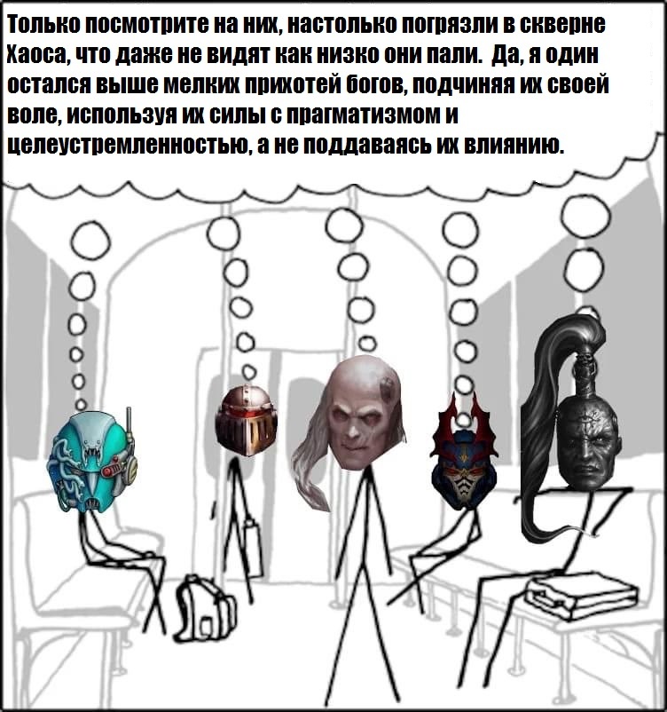 >>1147578 Ну да. И это и есть классика Храмовников - мозгов как у стегозавра и большая часть - в жопе, а оставшийся грецкий орешек из нейронов за лобной костью толщиной 240 мм занят РУБИЛОВОМ/МОЛИТВАМИ, примерно, шестьдесят на сорок. Мутанты с нормальным поведением случаются, но их быстро выявляют капелланы и отправляют в Караул Смерти, кукарекать на тумбочке в спейсхалке для привлечения генокрадов. >>1147579 Конкретно, очень хуевый. Потому что все подчинение держалось на страхе пиздюлей и ауре шикарности. А где МИССИЯ КОМПАНИИ, которую бы понимали как единую цель и смертные, и десант , и примархи? И вообще все? Но и Империум строился наспех.