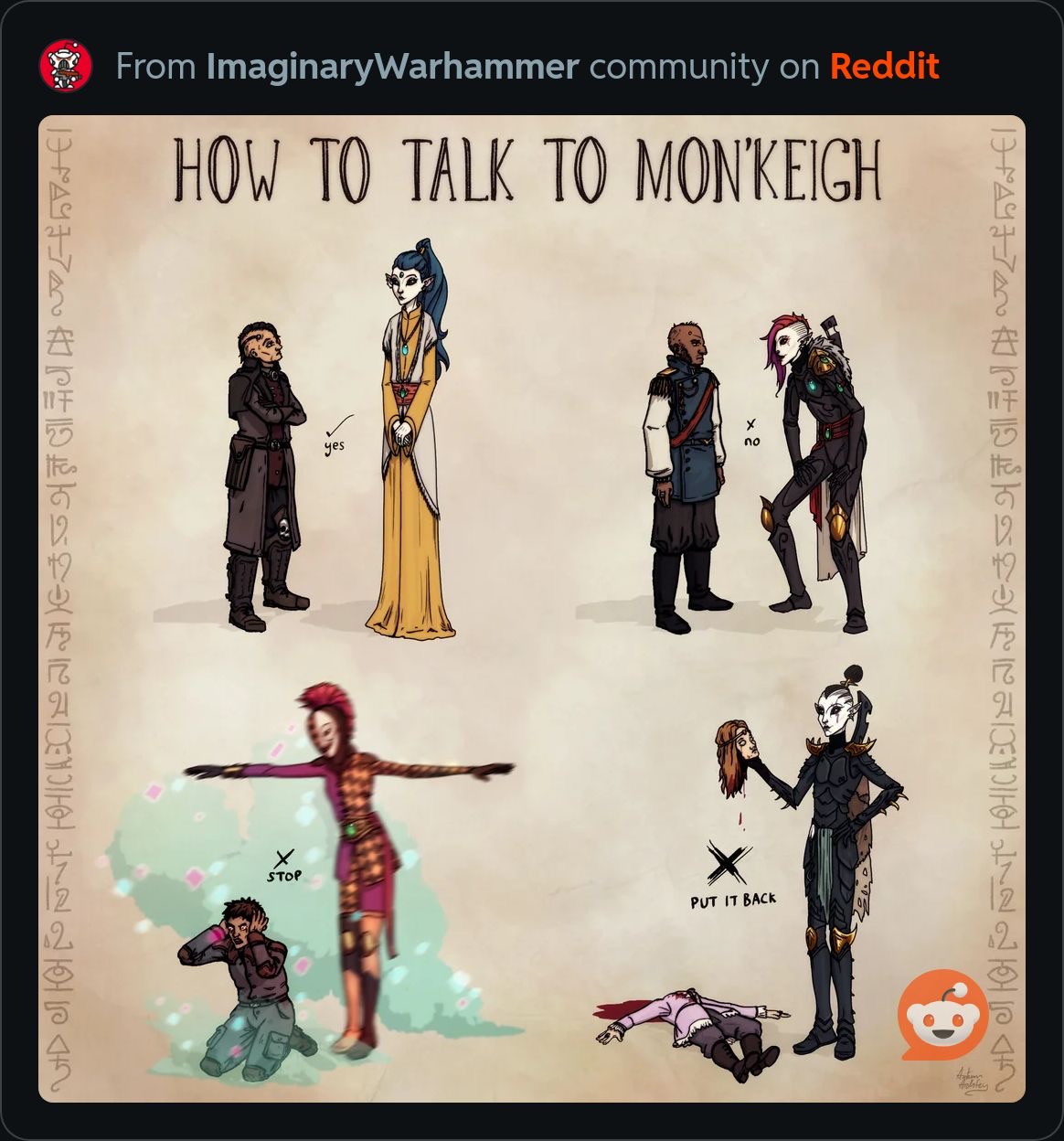 > Тауфаги - буквально худшее, что есть в вахе. Потому что являются тем же самым империумом, но только пытаются из себя каких-то невъебенных святых строить Как и Империум, нет? В том ведь и суть фракции, что она пытается быть непохожей на Империум, а получается с переменным успехом. Тем и интересна.