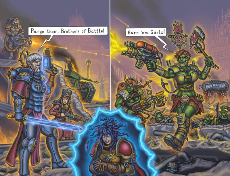 >>1147392 >>1147390 >>1147387 Вы ржете, а орки ведь, буквально, представляют ЫМПЫРАТАРА в виде человеческих титанов. То есть, если для людей всех видов, бой есть проявление высшей преданности и веры Императору и, иногда, Он и моего ангелы, нисходят до помощи смертным, которые любят даже петь литании и молится, то для орков поле боя - это там, где одетые в железяки ЫМПЫРАТАР юдишек Тупые ксеносы не понимают, что титан есть воплощение Омниссии, аватаров которого и является Император. С ними сражается не бог, а бог-машина! Тупые зелёные грибы не могут отличить одно от другого. и ГОРК/МОРК сражаются для потехи. И орки любят бабахать погромче . Потому что звук выстрела нравится Горкаморке больше, чем молитвы- ихнему Императору. И вообще, целится не надо! Император... То есть Горкаморк решит - попал ты или нет! Так работает правильное оружие. Два братских народа