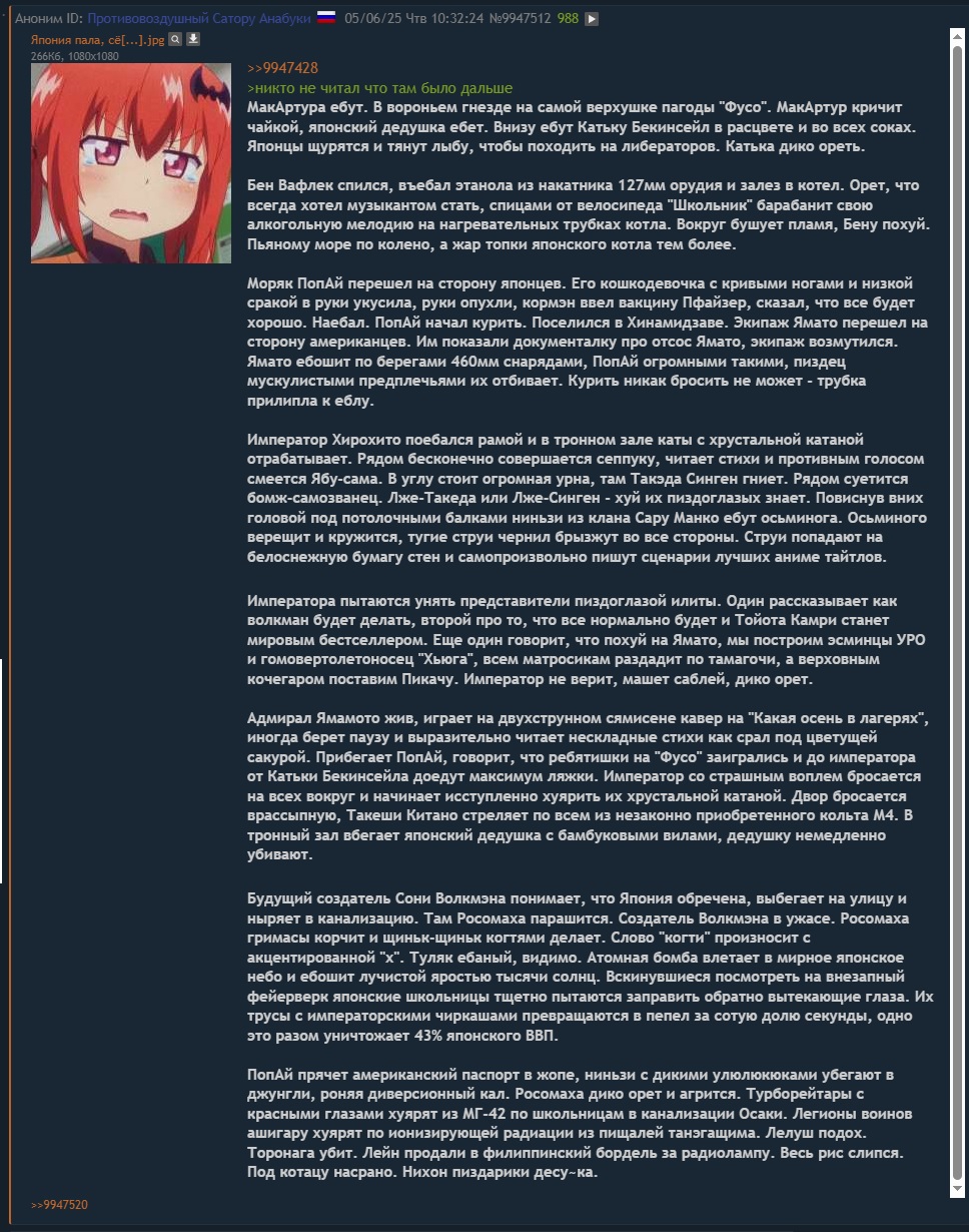 >>1147552 >Кустодий? Да пошел ты нахуй, кустодий! Десять из десяти, я сейчас аж слезы выступившие из глаз вытирал. А теперь представьте глубину иронии, когда выяснится - тем самым десантником, дошедшим до Слаанеш и всё же преклонившей перед ней колено, был ЧХ.