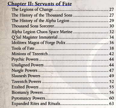 >Believing them to be manifestations of her own skills and knowledge, she collected a court of learned sages and strategists, putting each to death after she mastered their knowledge. Among these men was a secret sorcerer of Chaos. Hoping that it would end in her death, the sorcerer taught Ax’senaea the process by which to bind a powerful servant of Slaanesh to her own soul. His plan—that the despotic woman could not hope to command such a creature—was foiled by her overwhelming will and self-obsession. Though the ritual was long and exhausting, Ax’senaea was able to crush the daemonic entity beneath the weight of her indomitable will.