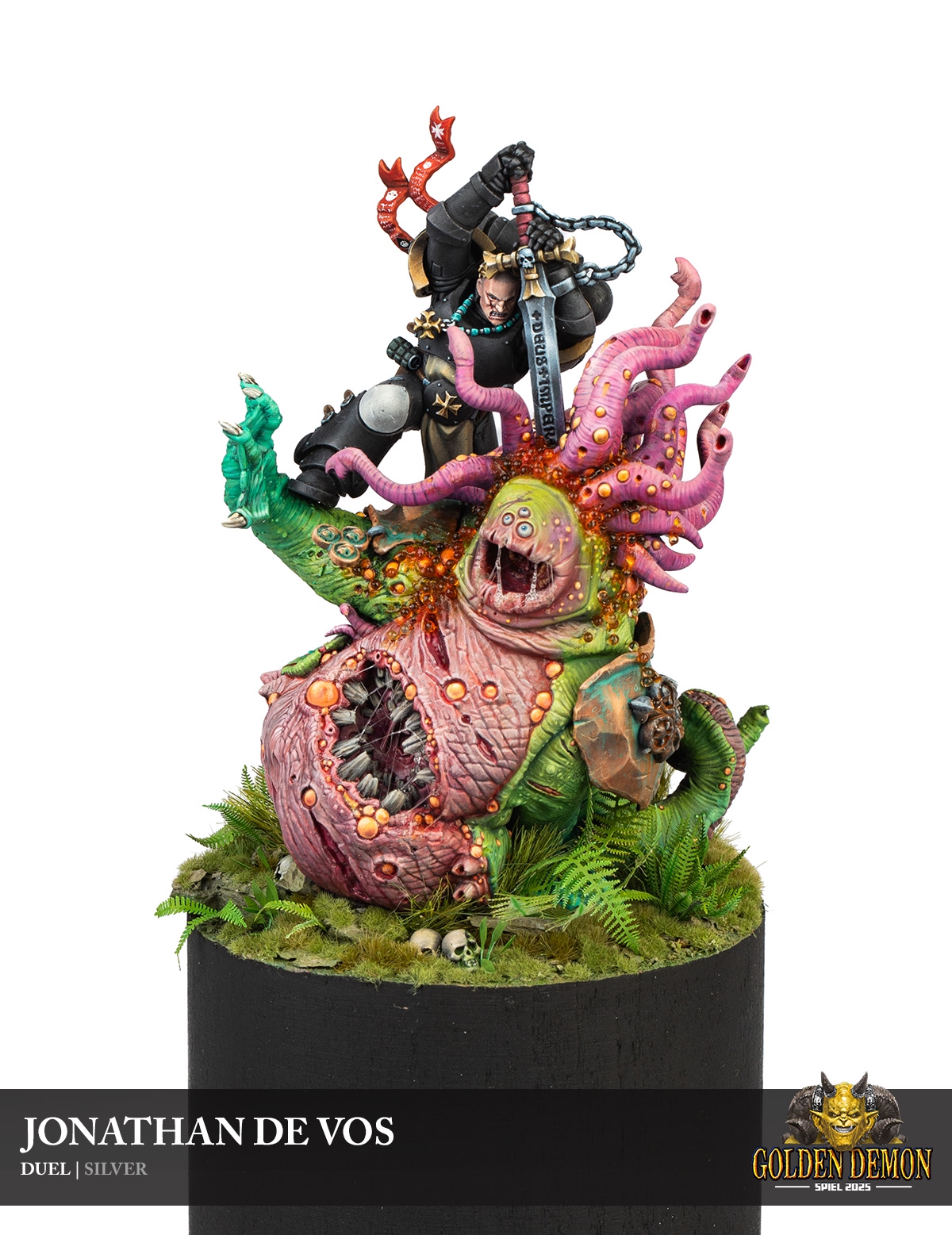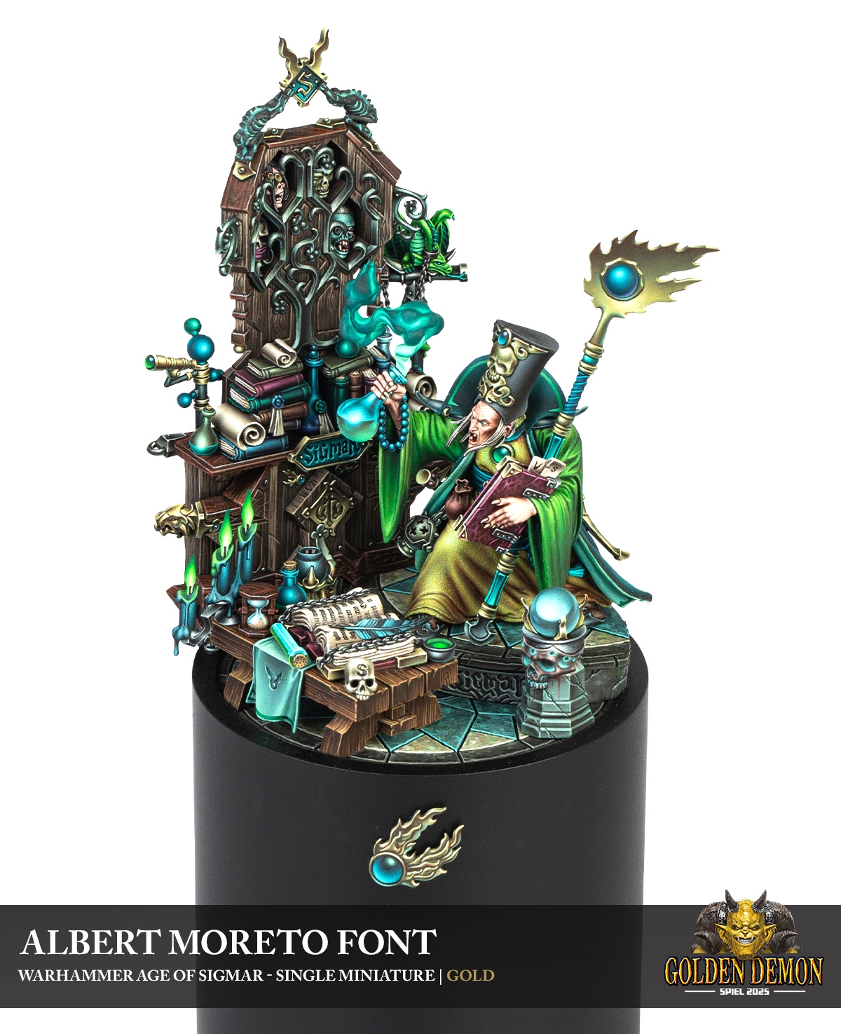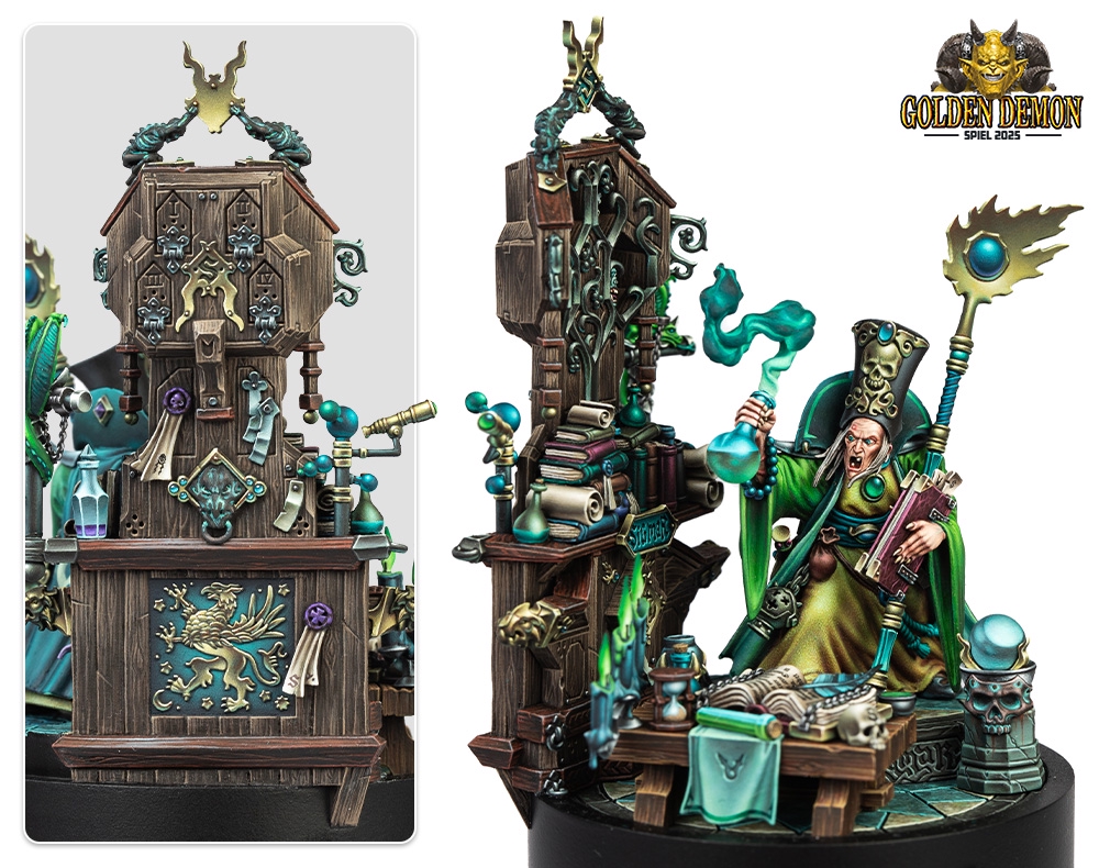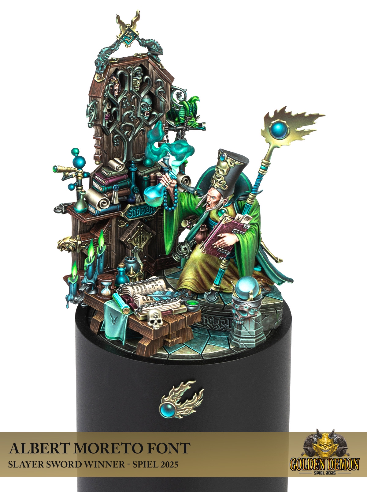 Если было интересно, что это такая за миниатюра, выигрывшая Slayer Sword, то вот немного про нее. Аффтар поведал, что в ней было использовано как минимум 17 миниатюр из разных систем плюс лепка. Найди их всех! Collegiate Arcane Freeguild Cavaliers Tahlia Vedra Luminark Of Hysh Bastian Carthalos Lord-Terminos Necromancer Vanari Auralan Wardens Vanari Starshard Ballista Scriptor Mortis Lord Vitriolic Skabbik’s Plaguepack Asarnil the Dragonlord (1998) Tomb King on Necrolith Bone Dragon Ahriman of the Thousand Sons (1996) Sammael, Master of the Ravenwing (1999) Sammael, Master of the Ravenwing (1999)