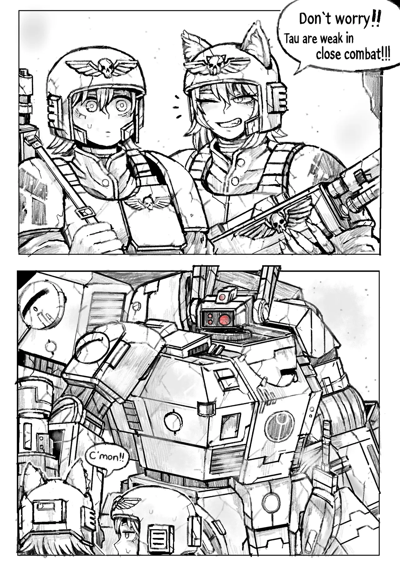 Каких-то дебилов тау в разведчики набирают >Но некоторые т’ау смогли пройти сквозь ураган огня. Они прорвали проволочные заграждения, с презрительной лёгкостью разбрасывая мешки с песком. Внезапно шесть или семь т’ау оказались среди криговцев в передовых траншеях. Их боескафандры, выполненные из некоего загадочного ксеносского сплава, были лёгкими, но прочными, давая огромное преимущество в ближнем бою.