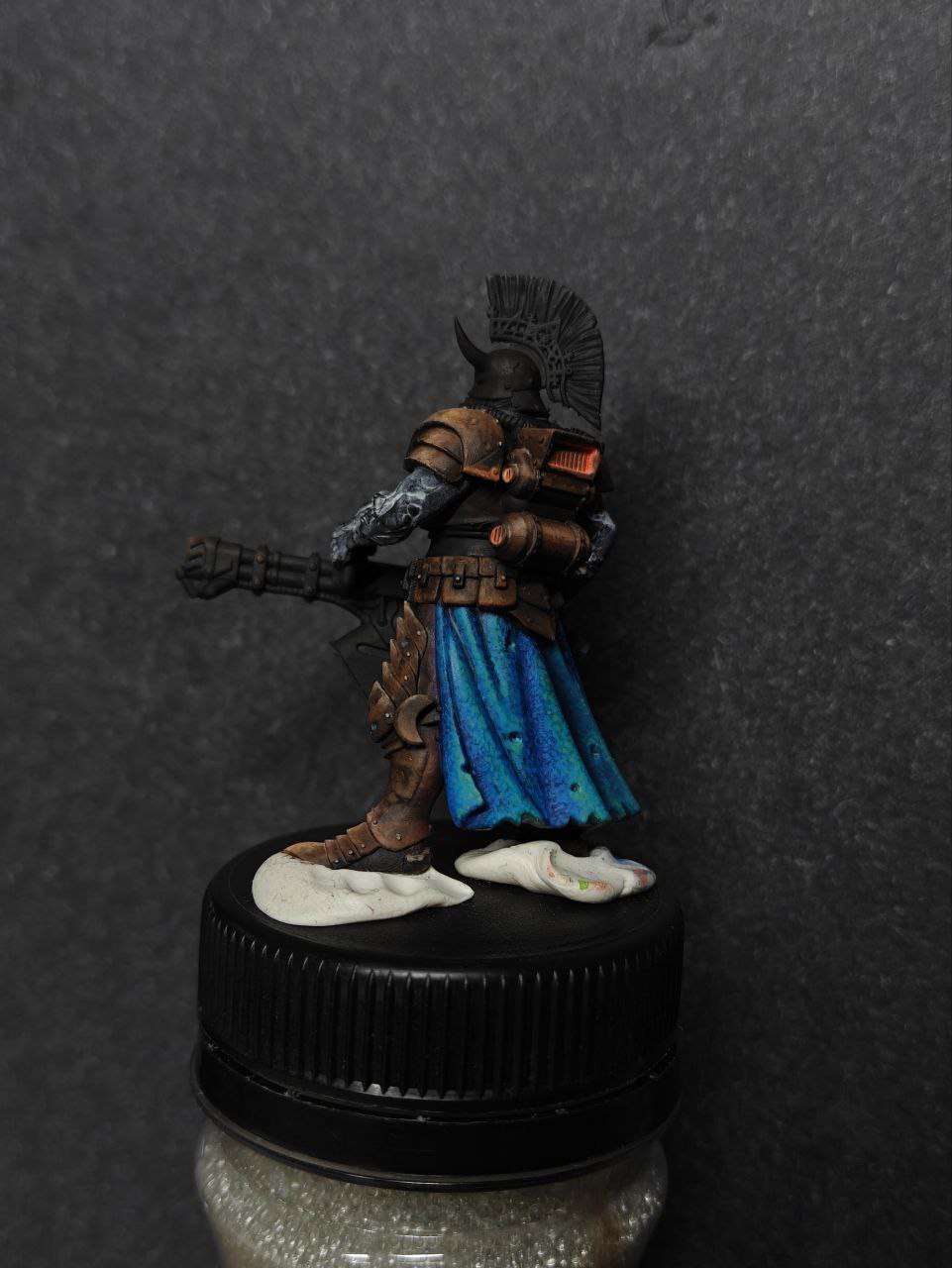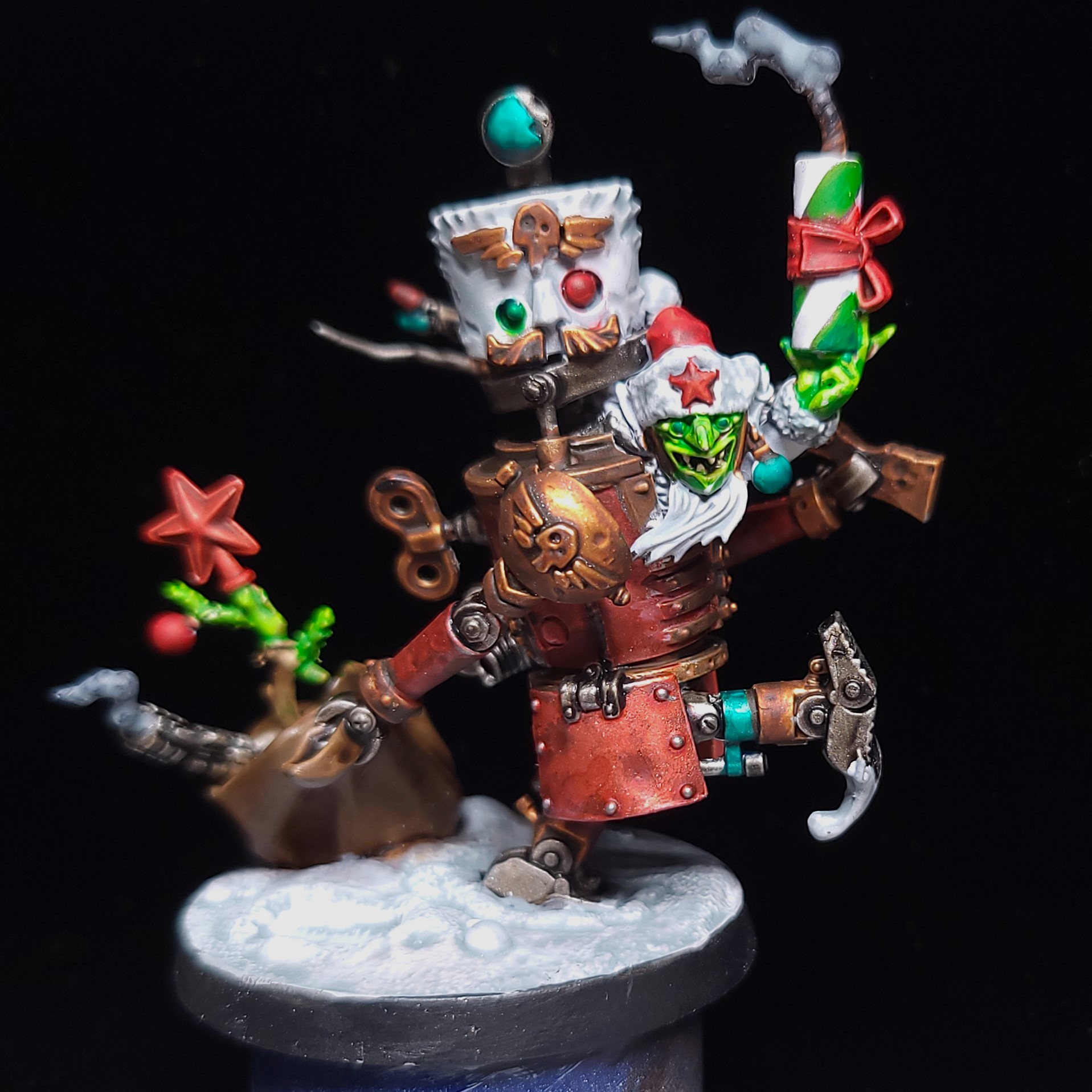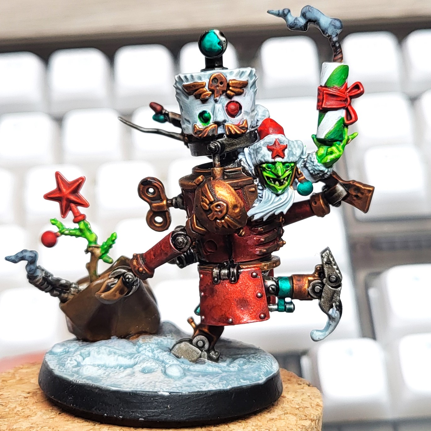 Короч, понятно, что это в лучше случае база, и есть много косячных луж контраста. В остальном понравилось, как контраст заменяет базу+проливку. Но есть ньюанс. Видите светлые точки на руке и наплечнике? Контрас медленее сохнет, чем простокраска. И, если заехал на него другой краской, а потом стер влажной кистью, стираются и кусочки контраста. Думаю, как минимум, покрашу все гемы, докрашу дым и покрашу звезду на ёлке в желтый. Ну и лицо. И, сука, глаза, которые на самом деле очки, то есть, гемы. А у них ещё и оправа же есть. Как я это закрашивать должен, если они чуть больше моего писюна? Хотя вот сейчас свежими глазами и под нормальным светом дома все детали, в общем-то видны.