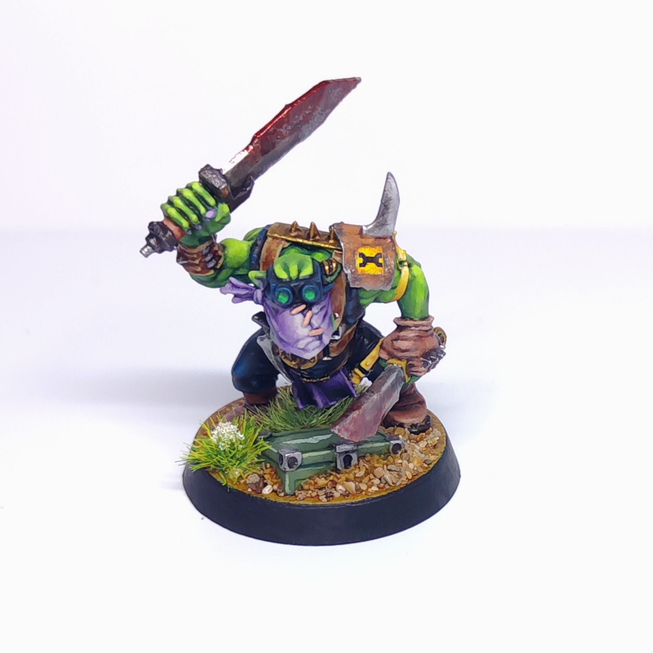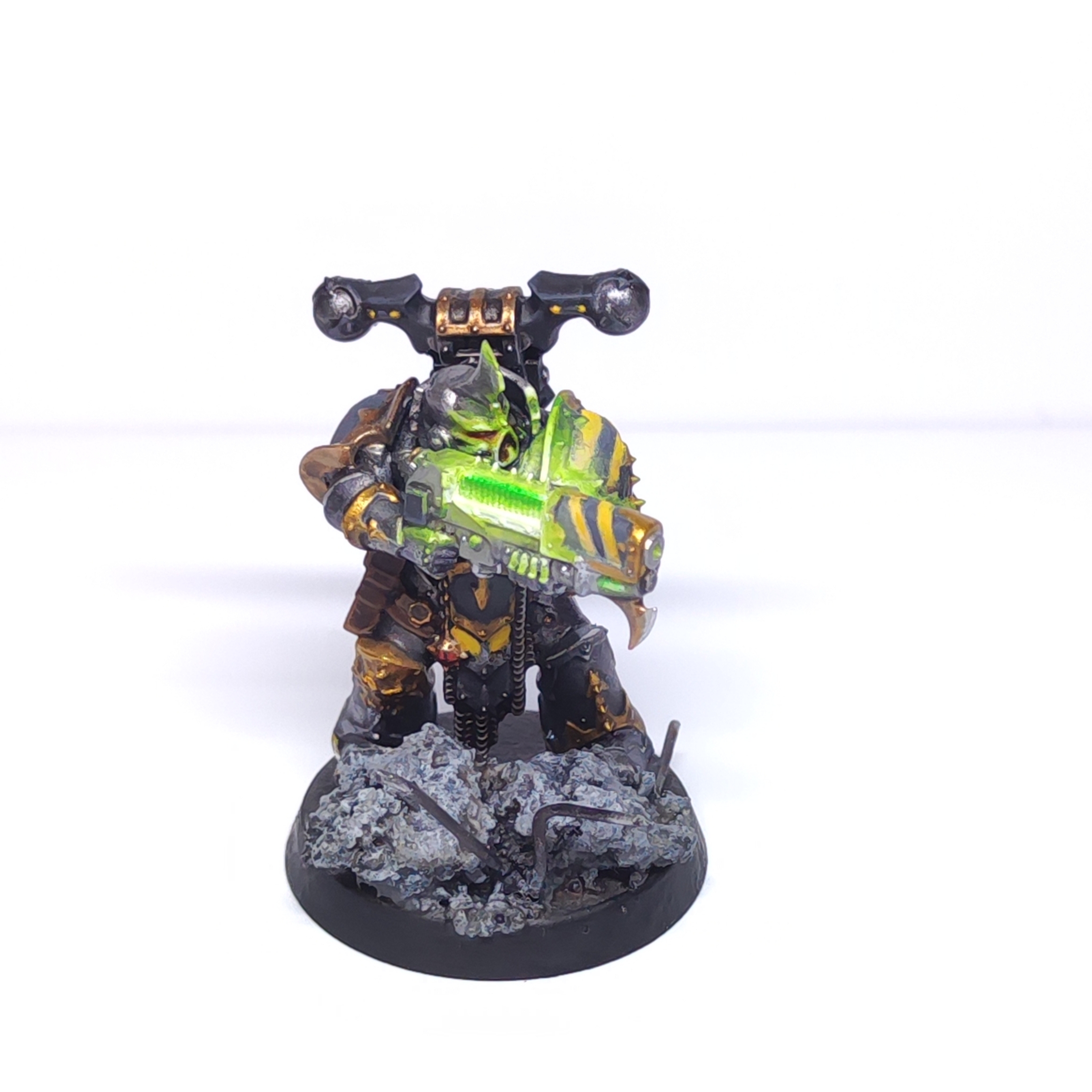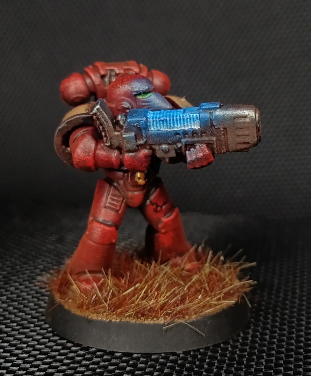 Короч, понятно, что это в лучше случае база, и есть много косячных луж контраста. В остальном понравилось, как контраст заменяет базу+проливку. Но есть ньюанс. Видите светлые точки на руке и наплечнике? Контрас медленее сохнет, чем простокраска. И, если заехал на него другой краской, а потом стер влажной кистью, стираются и кусочки контраста. Думаю, как минимум, покрашу все гемы, докрашу дым и покрашу звезду на ёлке в желтый. Ну и лицо. И, сука, глаза, которые на самом деле очки, то есть, гемы. А у них ещё и оправа же есть. Как я это закрашивать должен, если они чуть больше моего писюна? Хотя вот сейчас свежими глазами и под нормальным светом дома все детали, в общем-то видны.