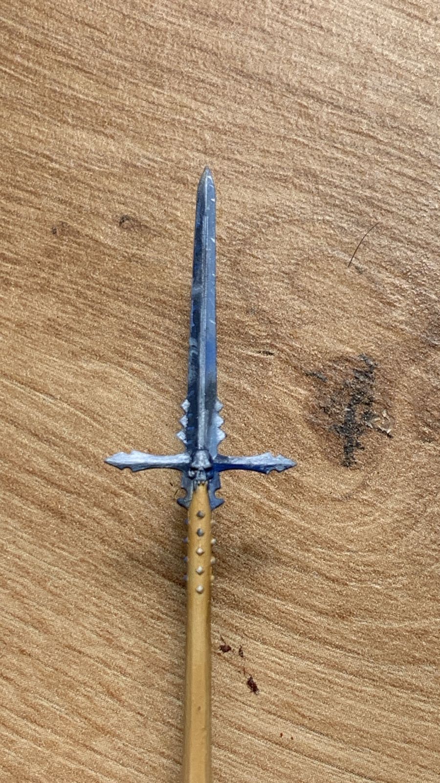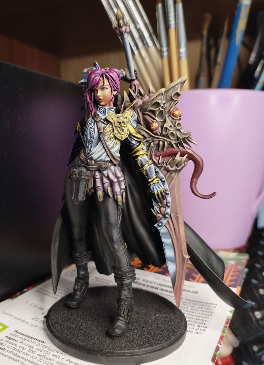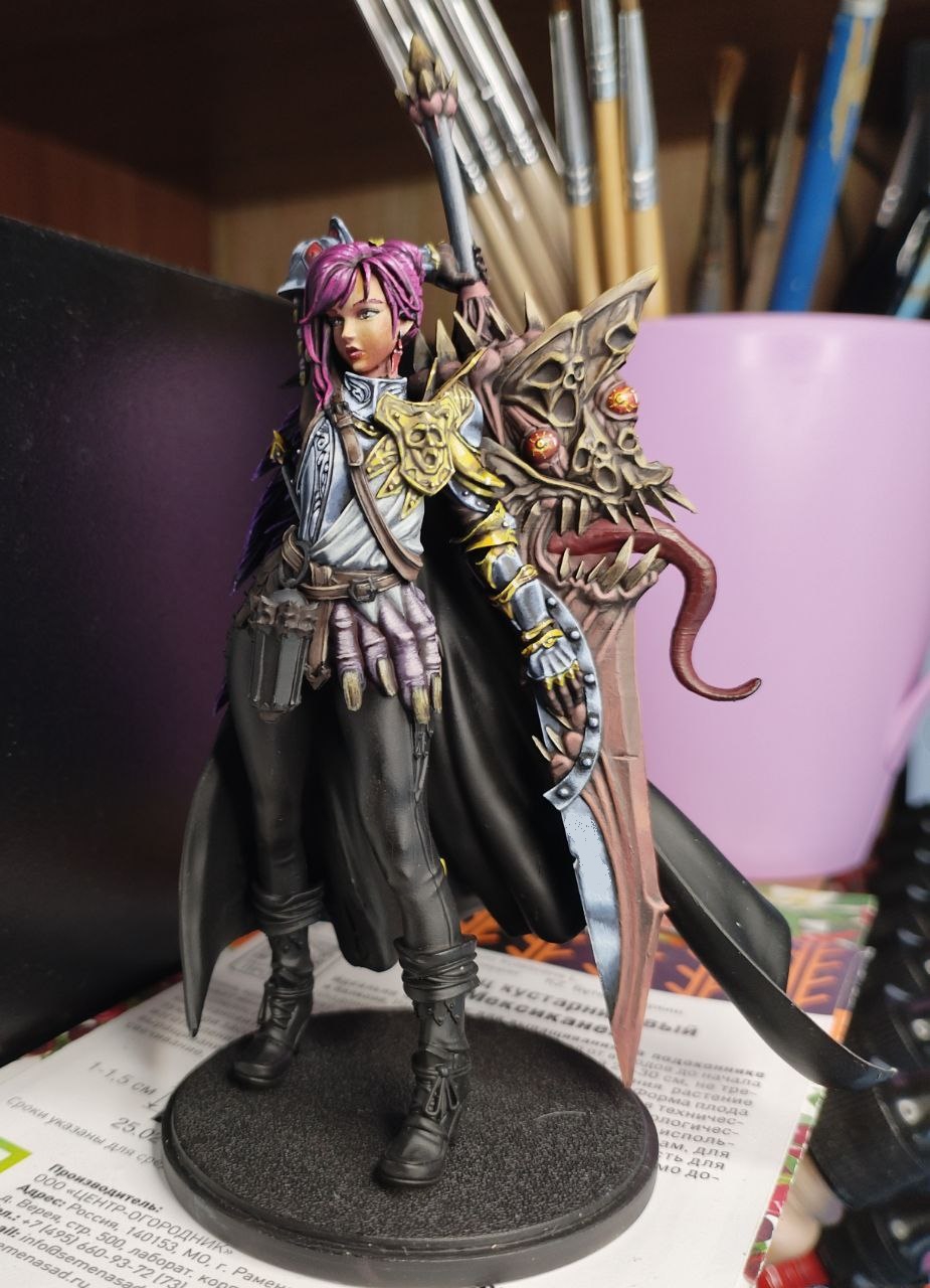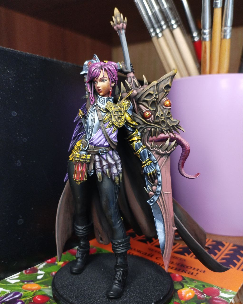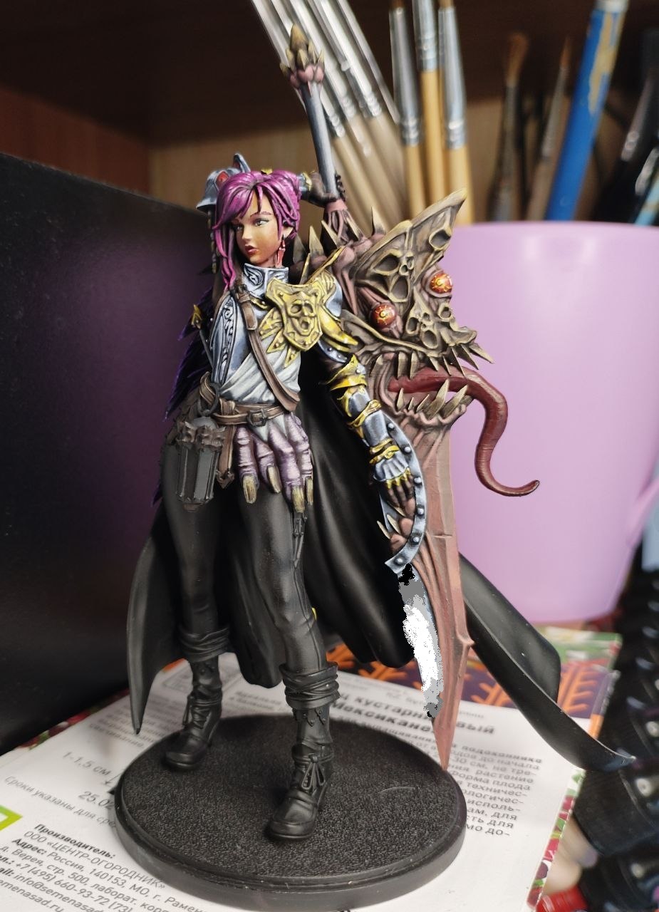 Углубил тени, добавил прозрачный слой краплака и еще точек белых понатыкал на выступающих поверхностях типа как экстремальное высветление. Детальки покрасил и копье тоже переработал. Как в целом получилось?