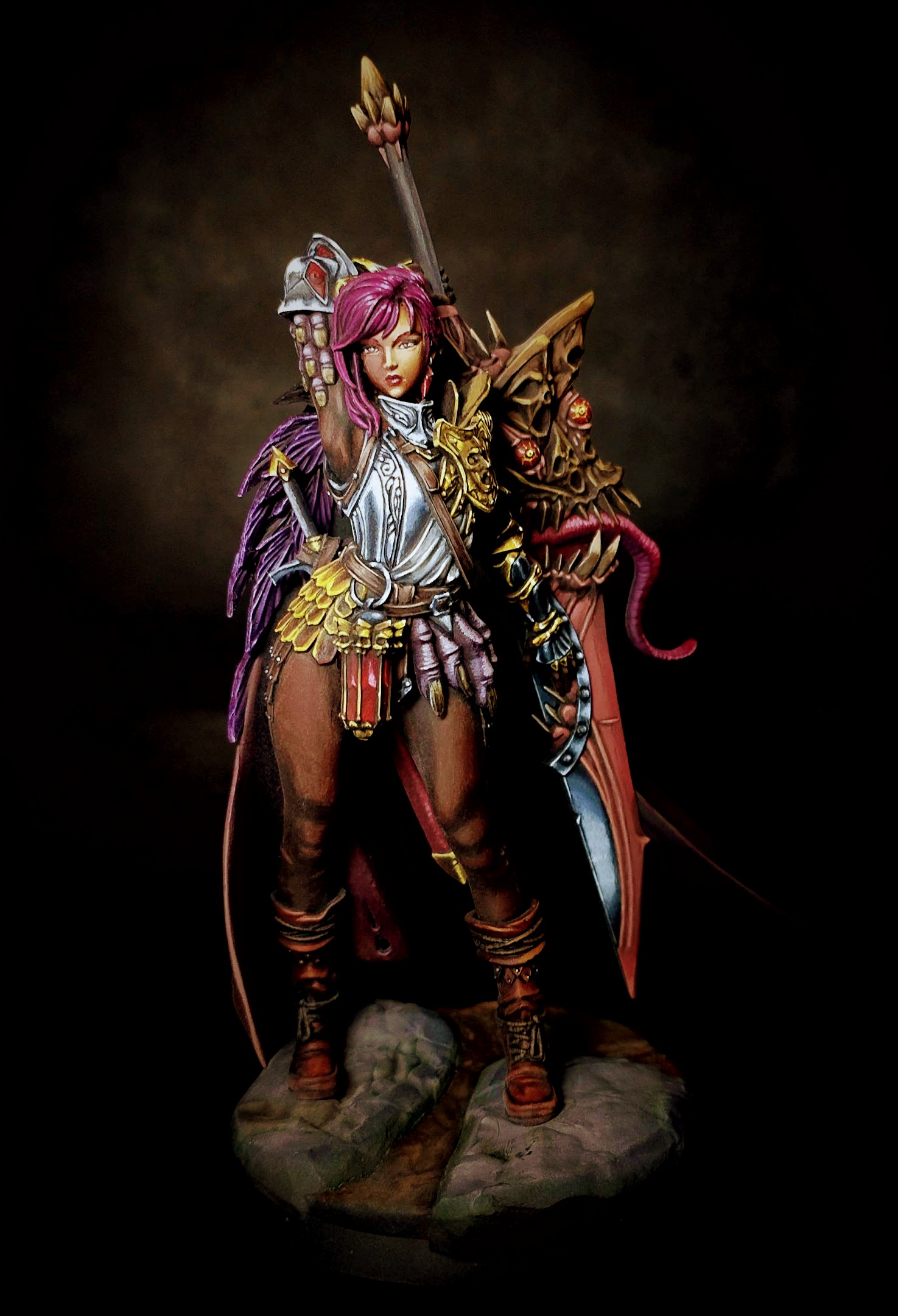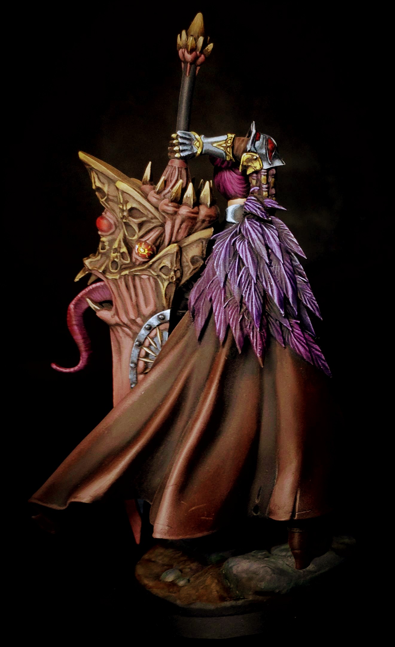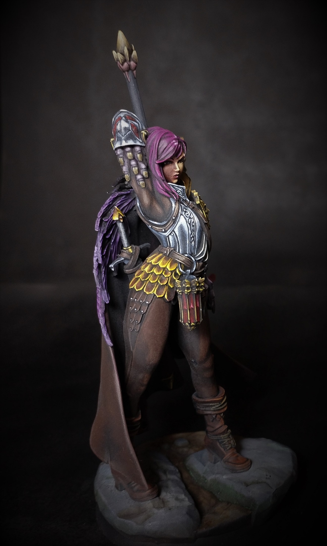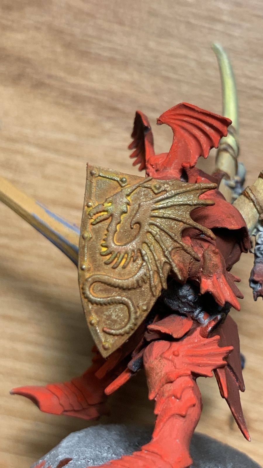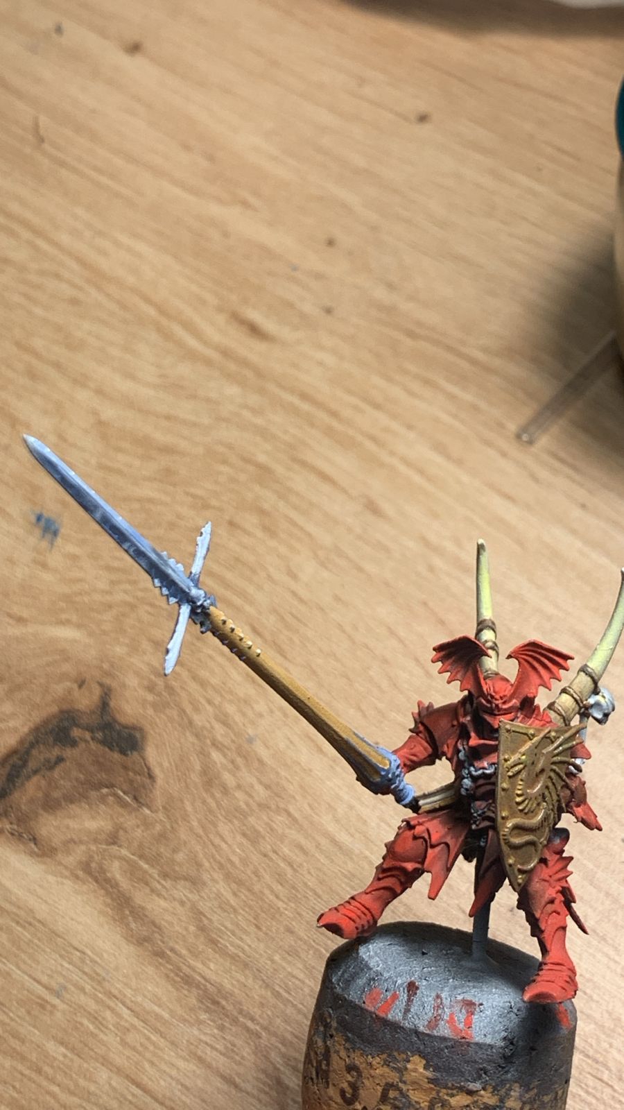 Углубил тени, добавил прозрачный слой краплака и еще точек белых понатыкал на выступающих поверхностях типа как экстремальное высветление. Детальки покрасил и копье тоже переработал. Как в целом получилось?