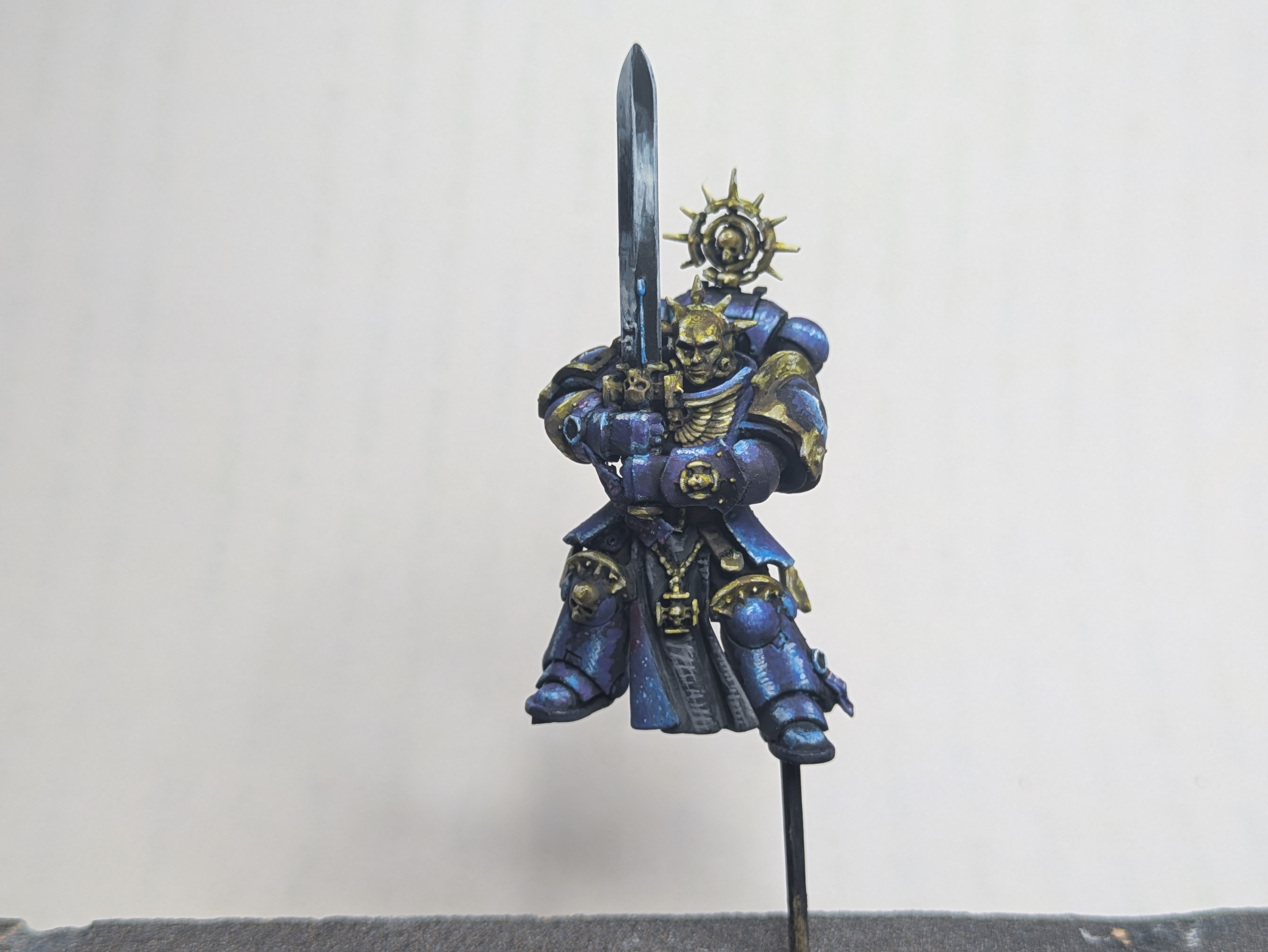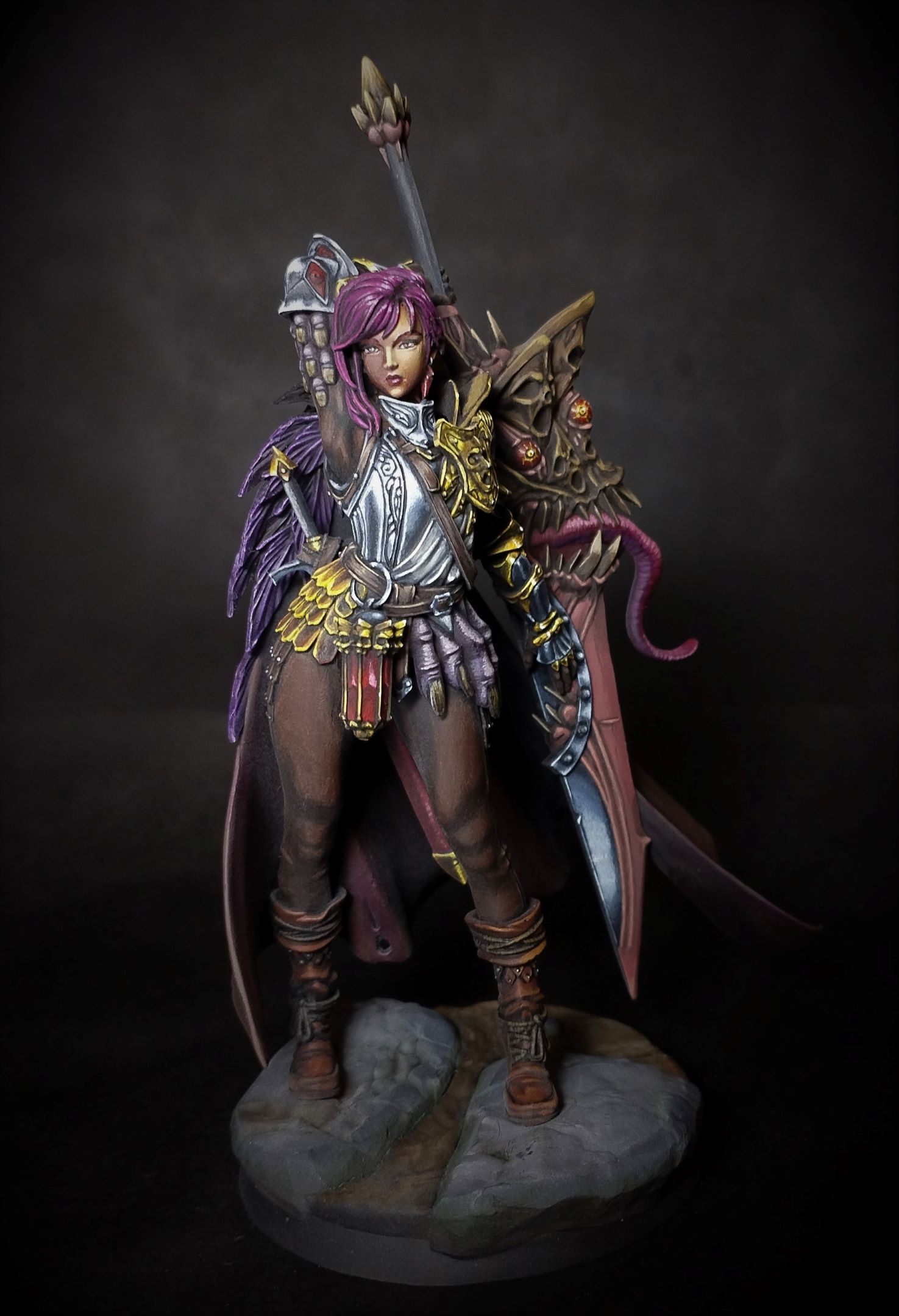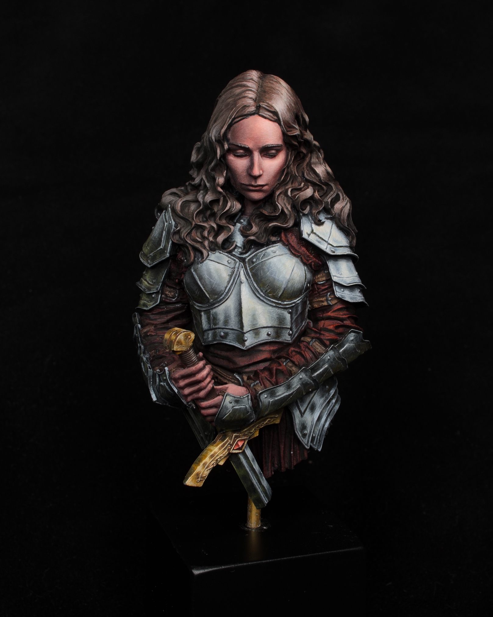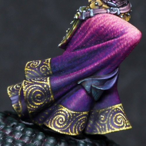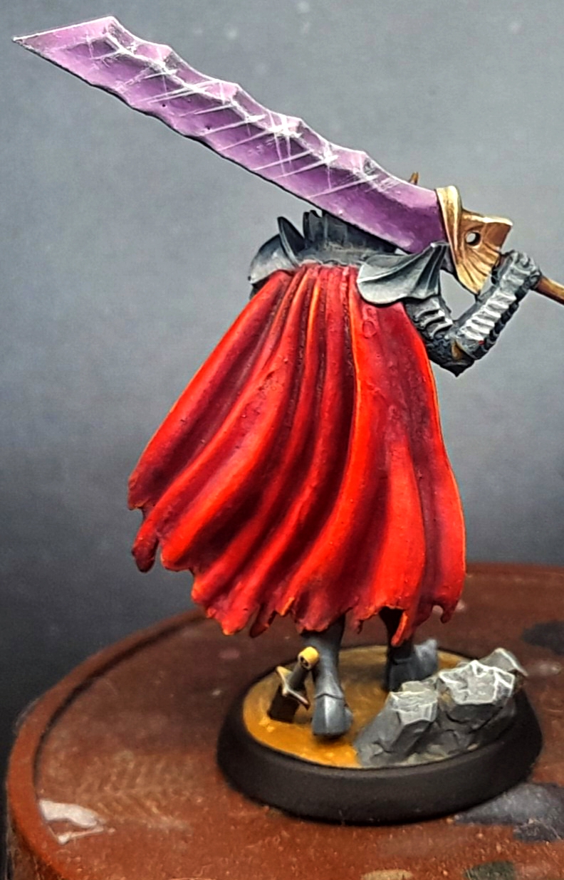 Углубил тени, добавил прозрачный слой краплака и еще точек белых понатыкал на выступающих поверхностях типа как экстремальное высветление. Детальки покрасил и копье тоже переработал. Как в целом получилось?