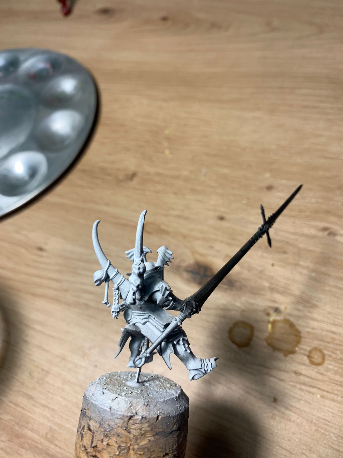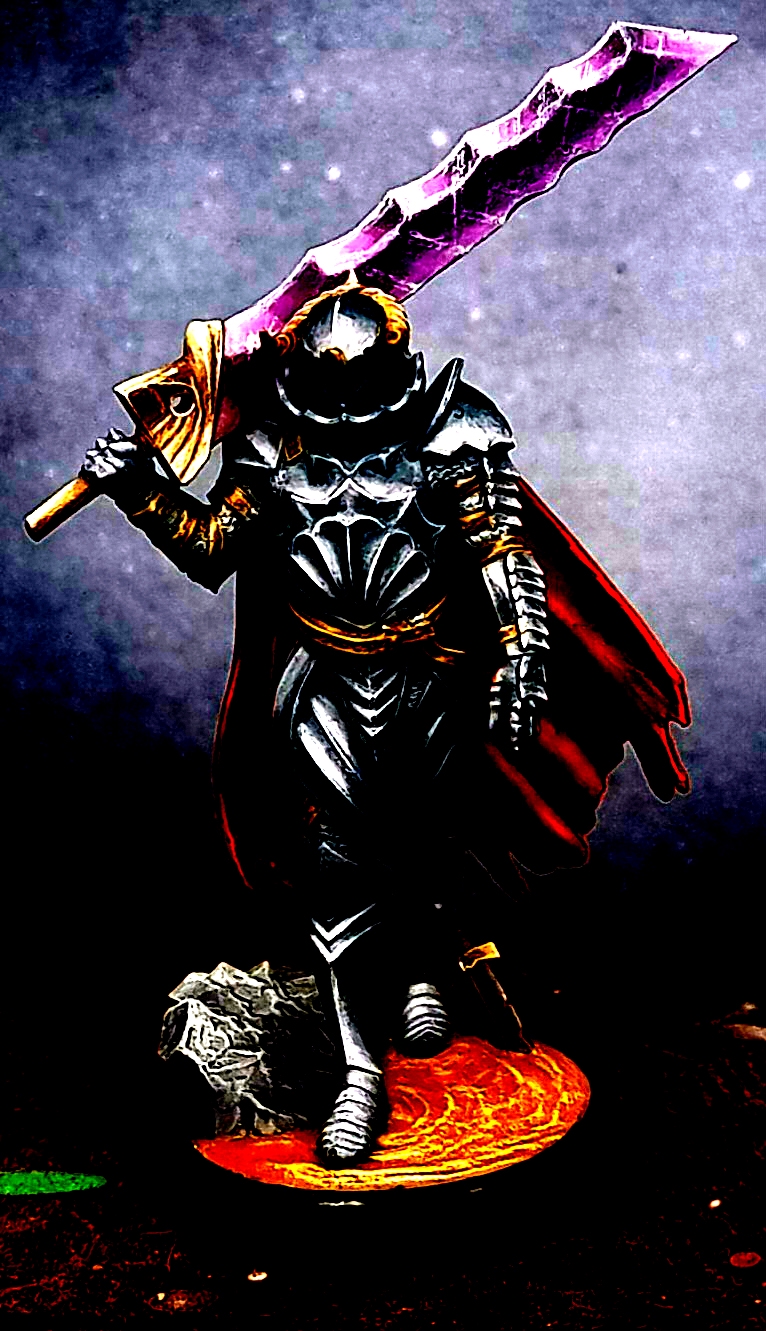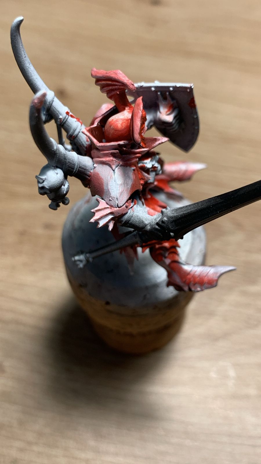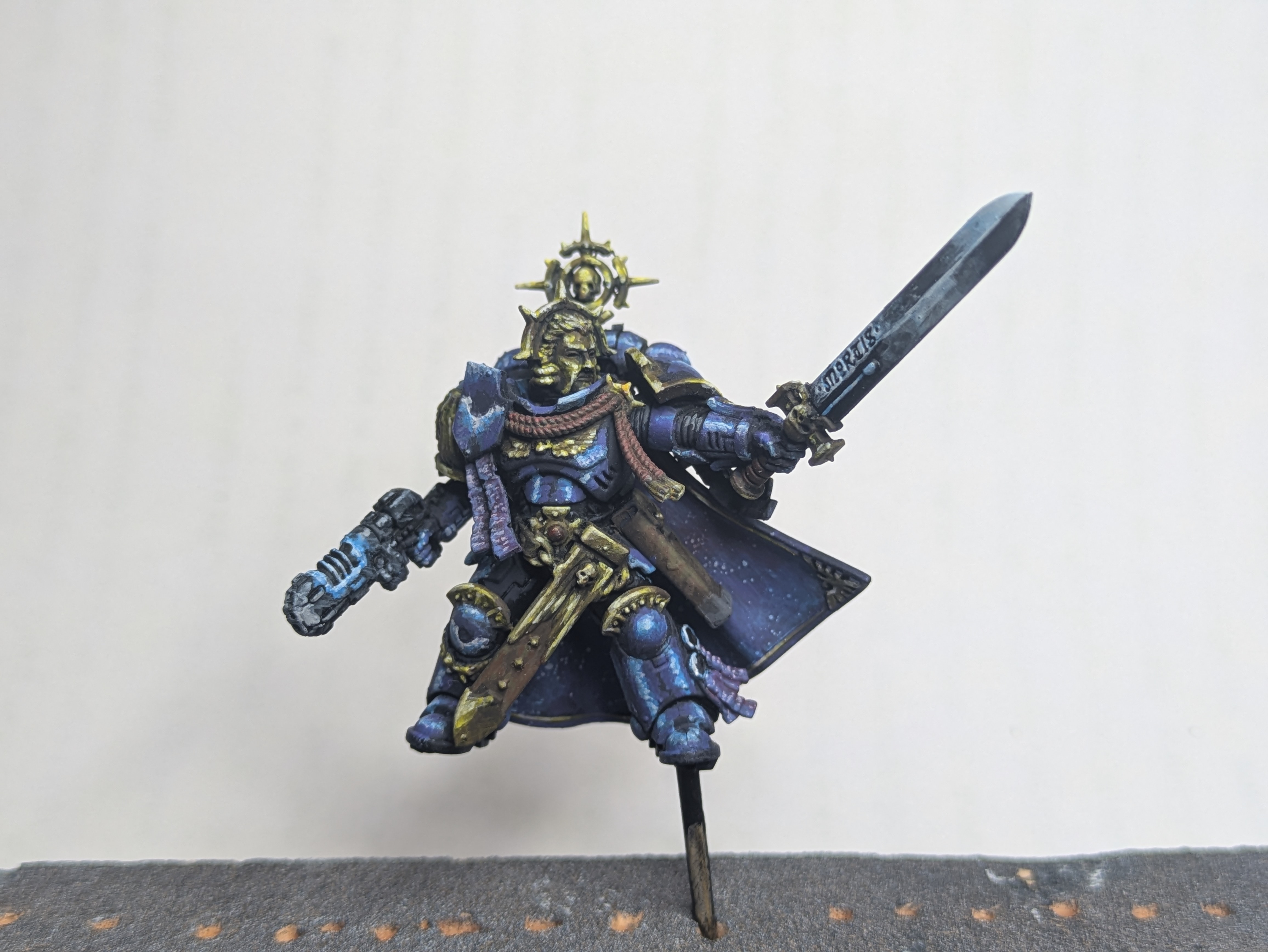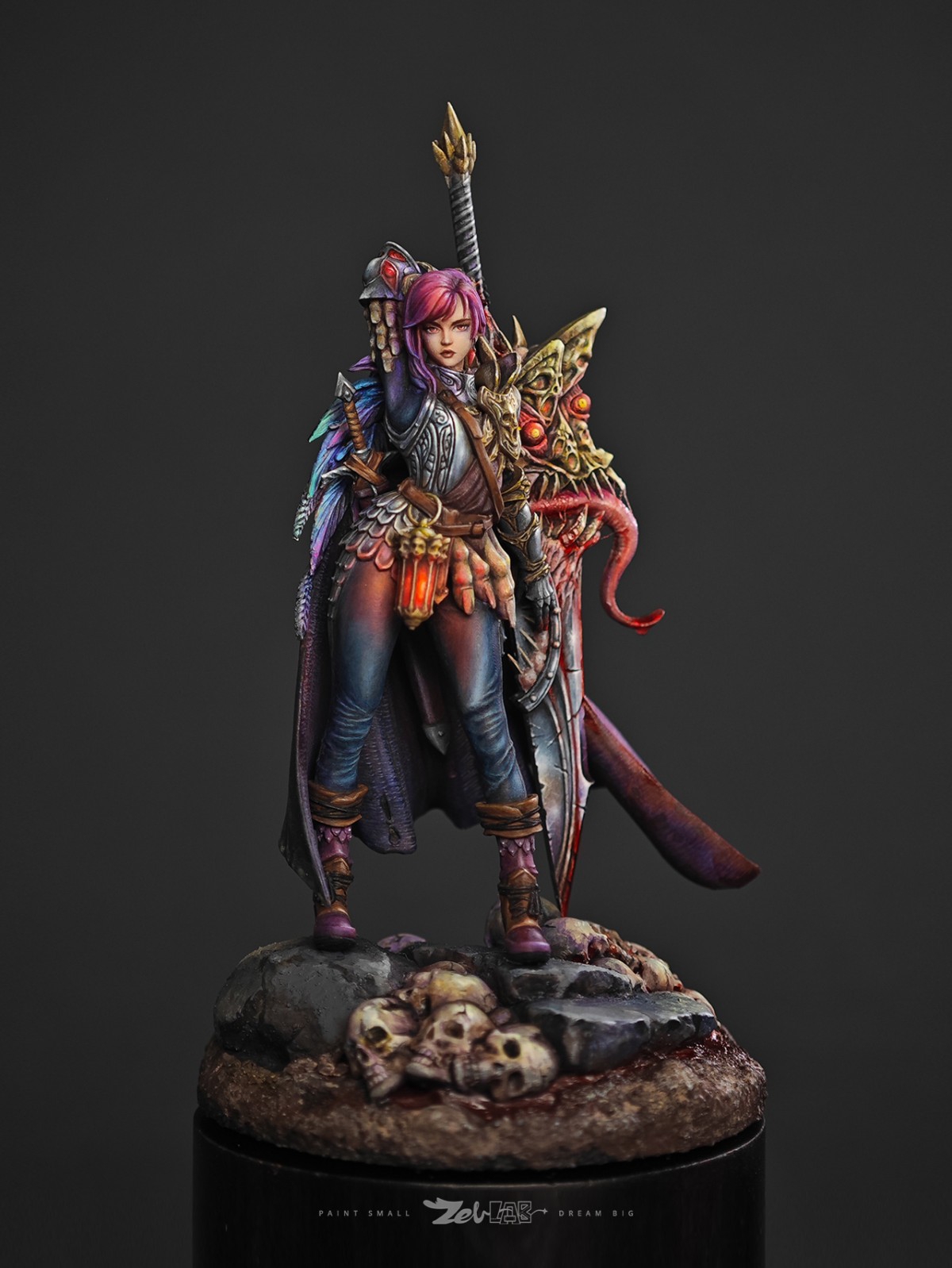 Углубил тени, добавил прозрачный слой краплака и еще точек белых понатыкал на выступающих поверхностях типа как экстремальное высветление. Детальки покрасил и копье тоже переработал. Как в целом получилось?