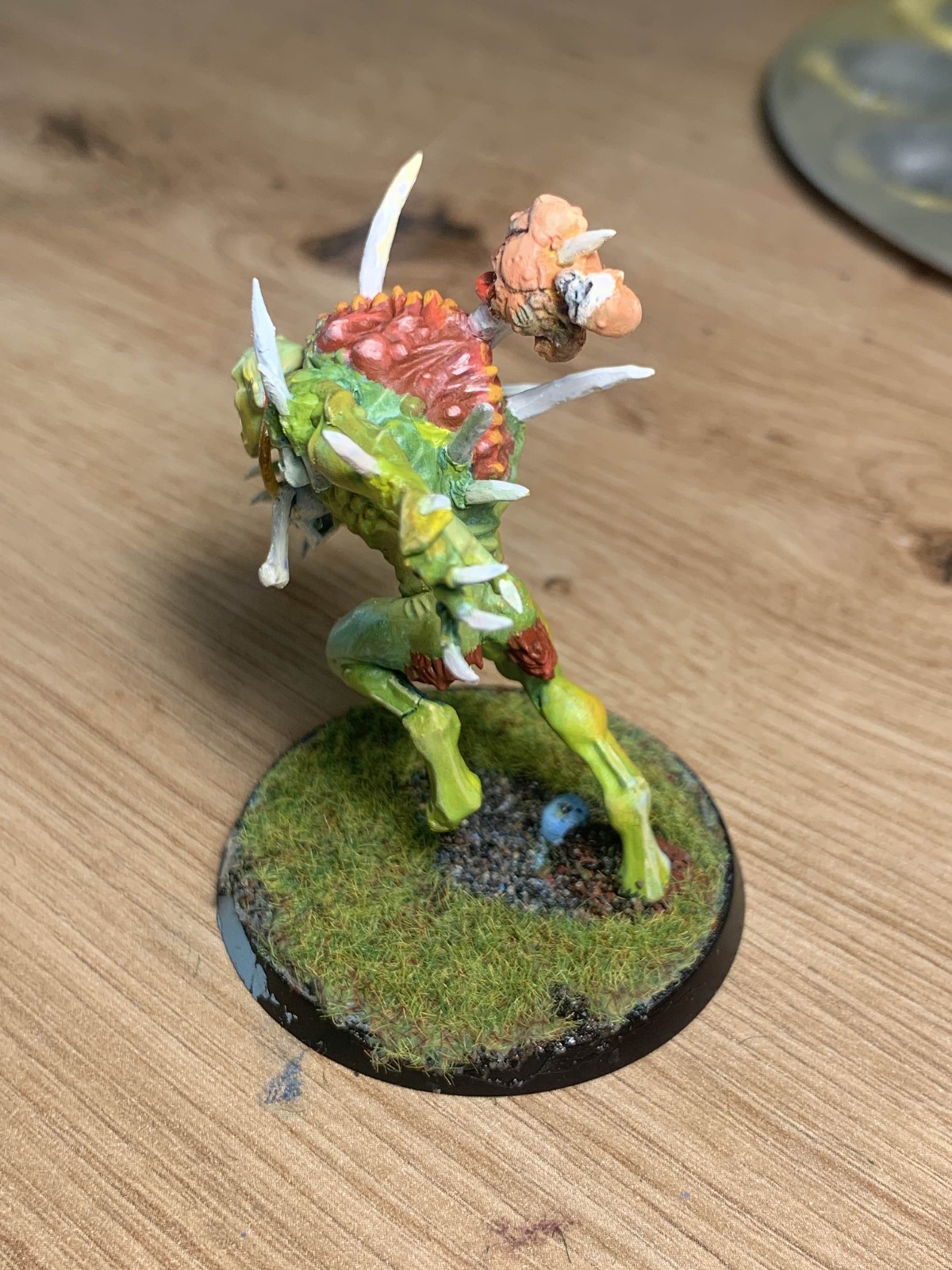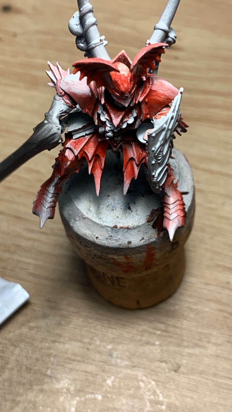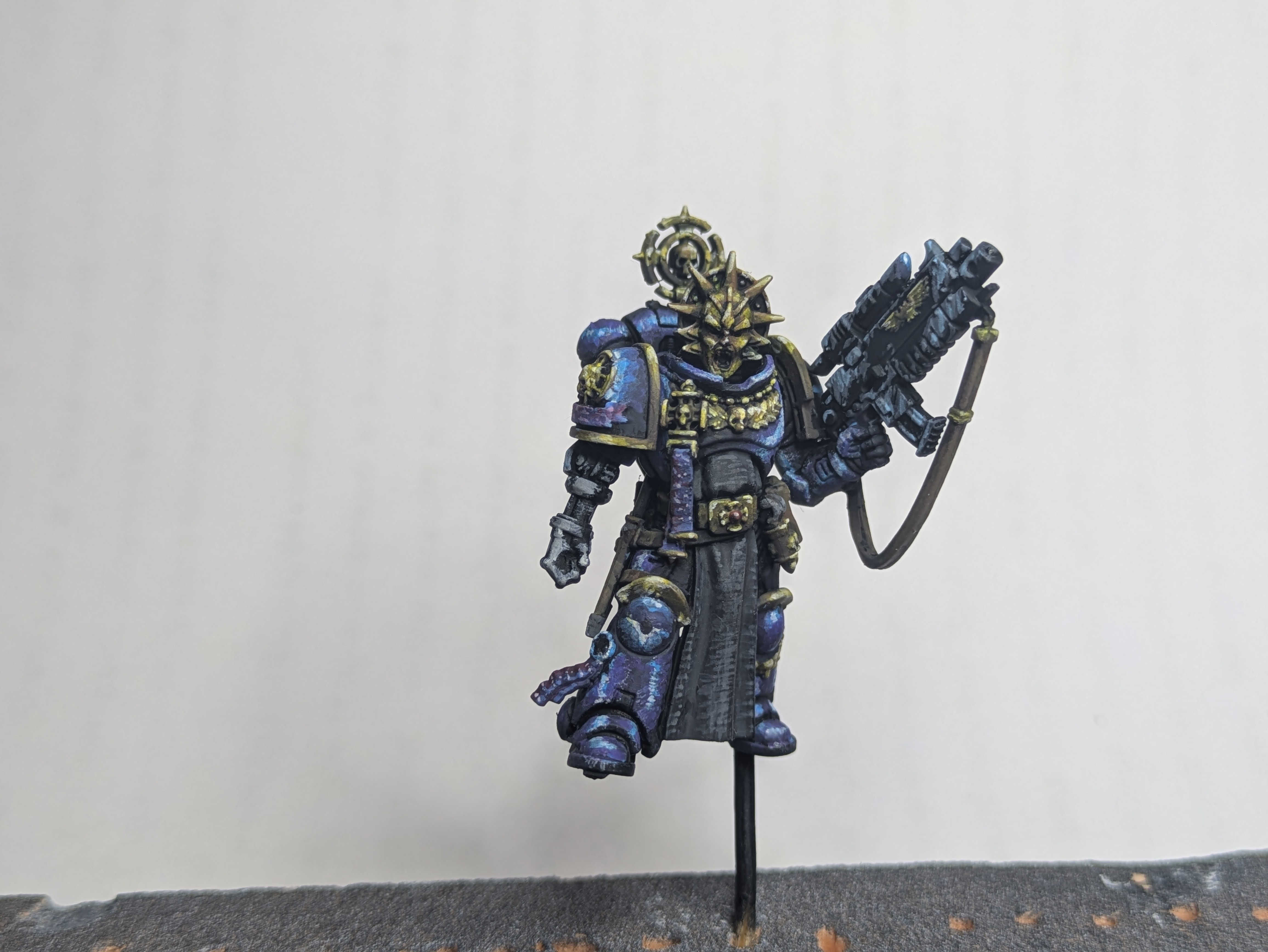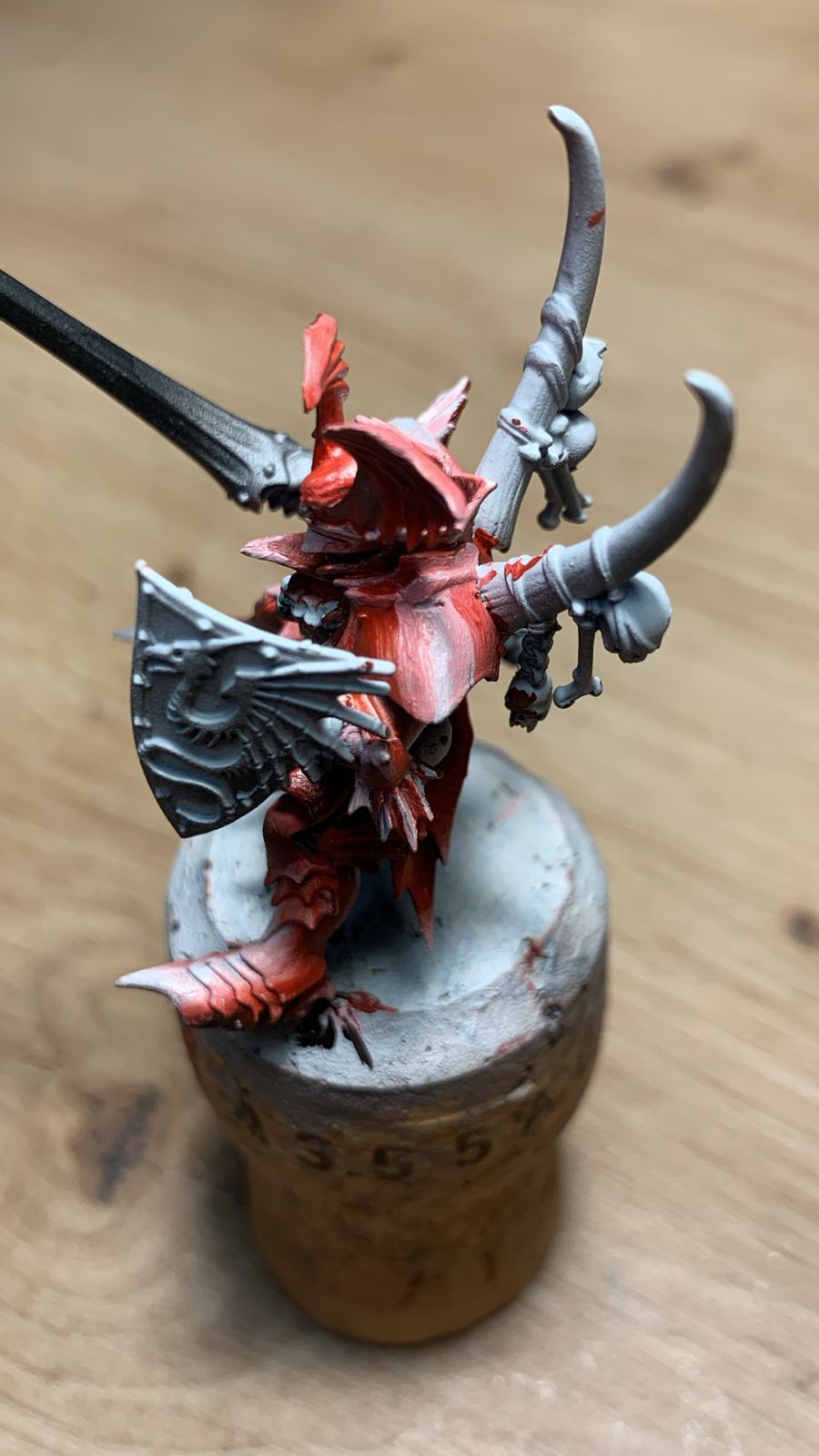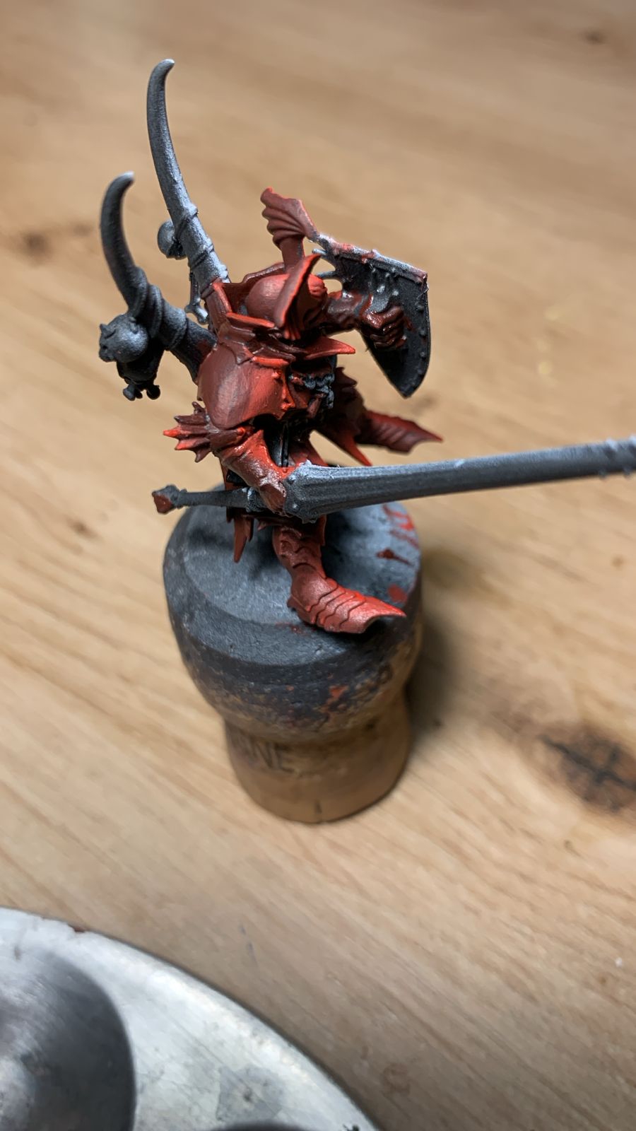 Углубил тени, добавил прозрачный слой краплака и еще точек белых понатыкал на выступающих поверхностях типа как экстремальное высветление. Детальки покрасил и копье тоже переработал. Как в целом получилось?