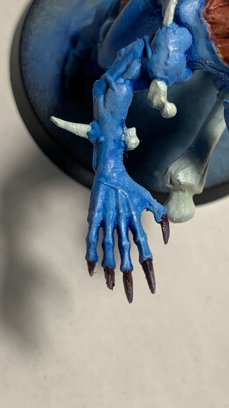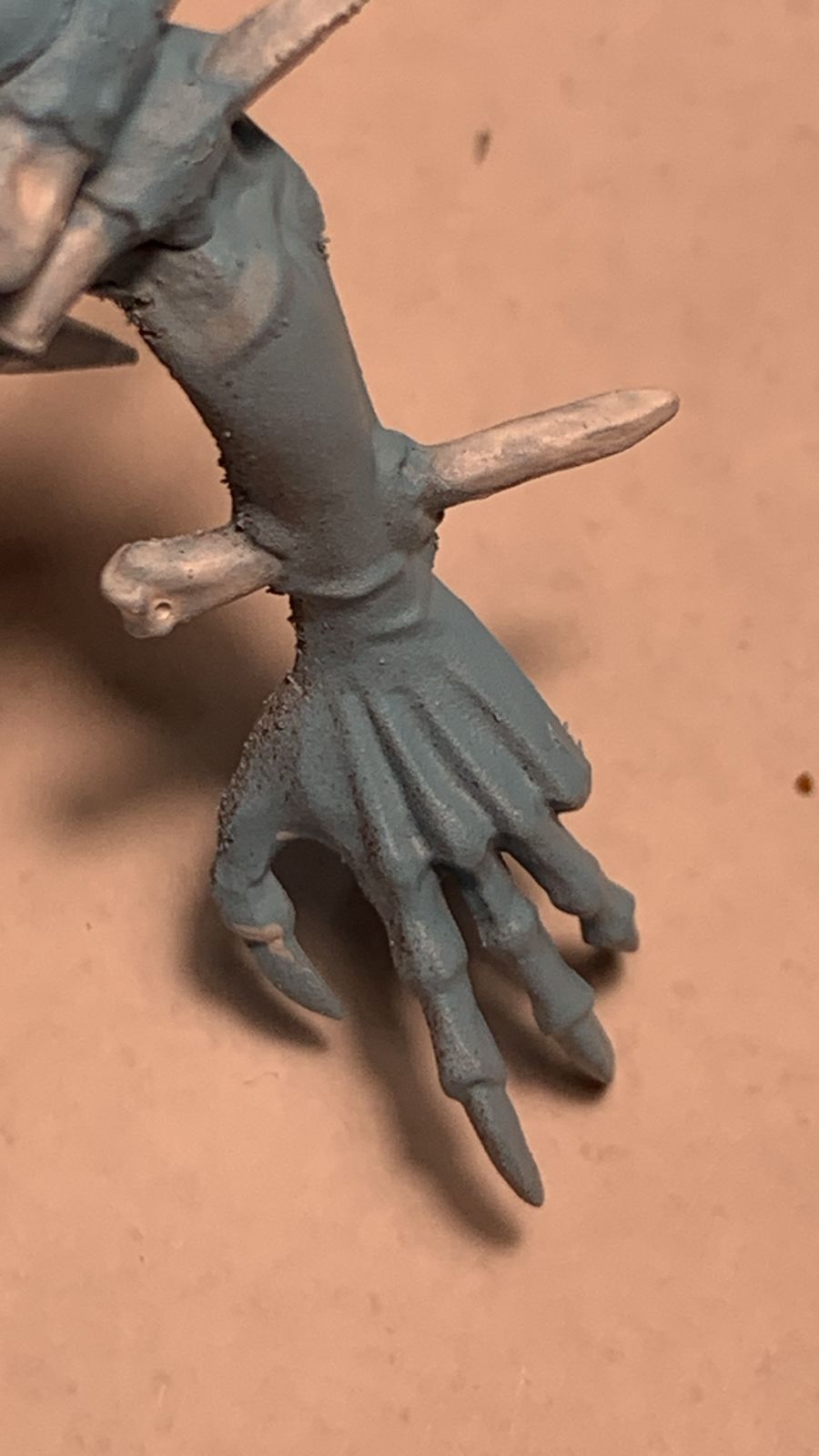 > на костях следы синего С этим я боролся. Это какая-то особенность масла, я поверх накладывал слой желтой краски, потом белой краски и после высыхания все равно проступает слой залезшей изначально синей. Сейчас еще слой белой наложу, посмотрю что будет, возможно надо больше слоев делать в таком случае.