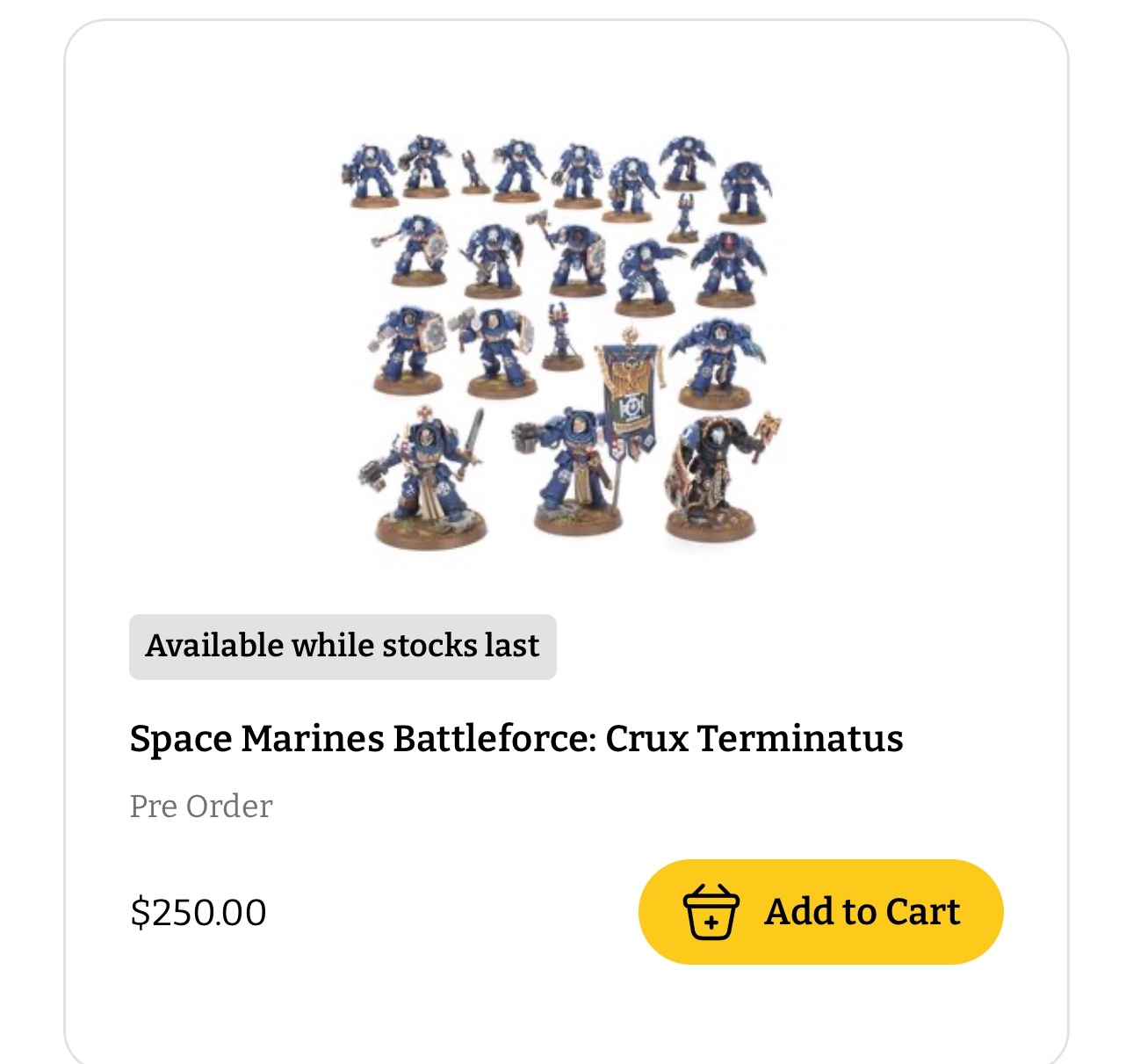 >>1150725 Где? Тип самое дешёвое это 250+ за штуку, и не оригинал, и без учёта доставки. Хуй знает, по моему лучше на озоне 2 фракции взять если играть с друзьями охота, либо если покрас больше интересует, то 1:35 купить, или фигурки аниме, или разных орденов или вообще наборы битсов набрать и собрать своего гигамарина