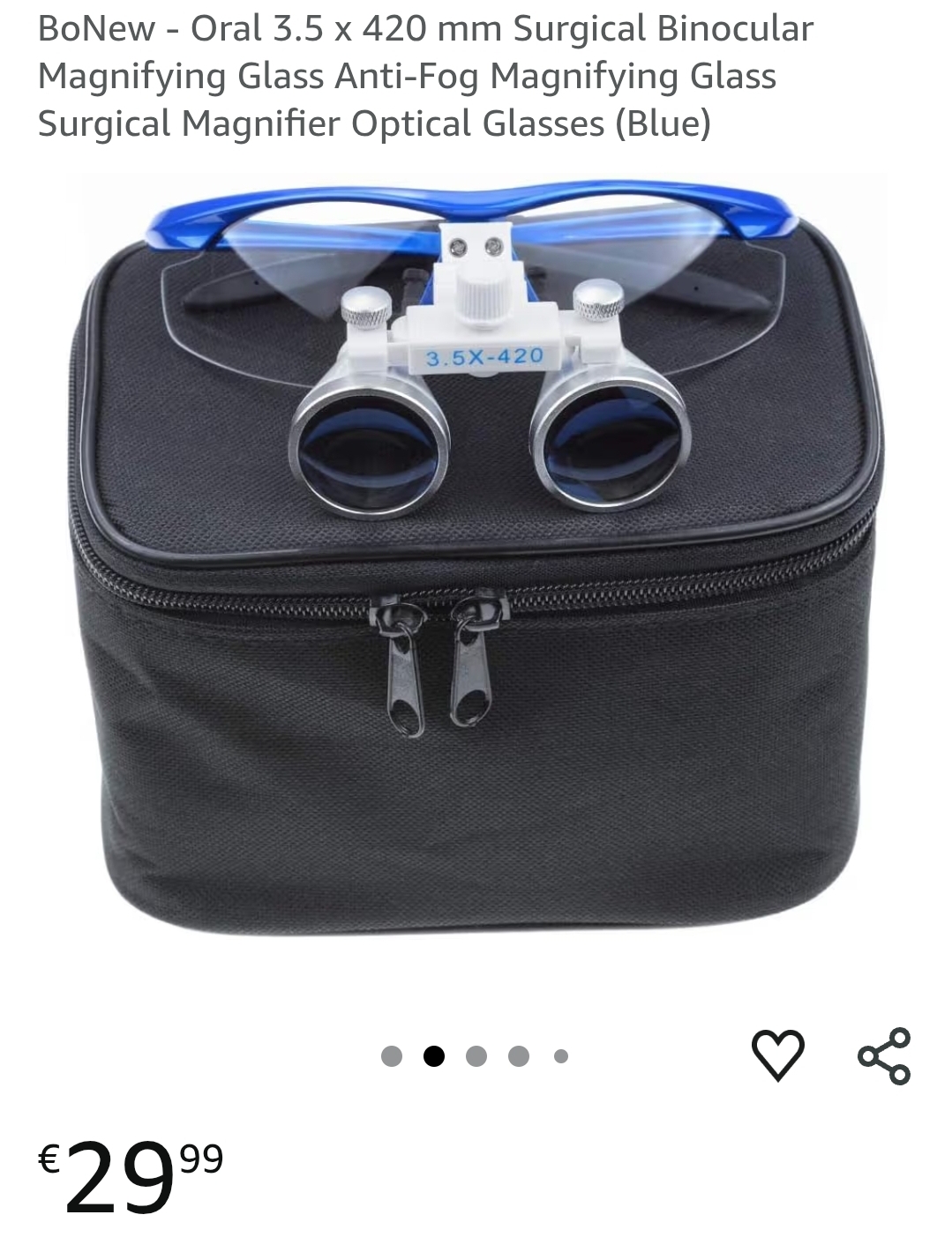 Красил тут новогоднего Гоббо. об этом вечером, если руки дойдут сфоткать, посмеётесь с нового криговца И просто охренел от обилия мелких деталей. Притом, с тех пор, как Глумхевен красил, зрение не село, вроде. Может, света было мало, я хз, так как не дома красил. Но чет я страдал больше, чем красил. И от процесса, и от концепции покраса тоже, но об этом в других сериях. Ок, думаю, есть же для хоббистов всякие очечи. Есть, однолинзовые под среднее межглазное расстояние, Китай 30 евро, США/ЕС - 80. И чем больше увеличение, тем, так же малое поле зрения. Смотрю дальше. А дальше уже дуплеты по 400+ евро (китайские стоят всё так же скромные 30). Ачё, всмысли? А где что-то между? Ну а Цейс вообще как прицелы уже стоят, но это понятно, у них медицинская сертификация, всё из титана и рабочее расстоянте большое, значит, линзы большие и корткофокусные, что дорого. Потом ещё не понял по увеличению. Большинство хирургических и зубоврачебных максимум 3 крата. Э? Ну, понятно, что есть специальные бинокулярные увеличители по 20х и микроскопы 40х+, с такими отдельно учатся работать, а эти 2-3 кратные просто чтобы не наклоняться сильно к пациенту. Но и хоббисты говорят, что больше 3 уже не кайф, маленькое поле и ГРИП, работать долго неудобно. И самые ходовые 2 - 2.5 крата. Но мне-то хочется мелкие детали аккуратнее прокрашивать, типа лица миньки или линзы на шлеме, это недолгая работа с большим увеличением.