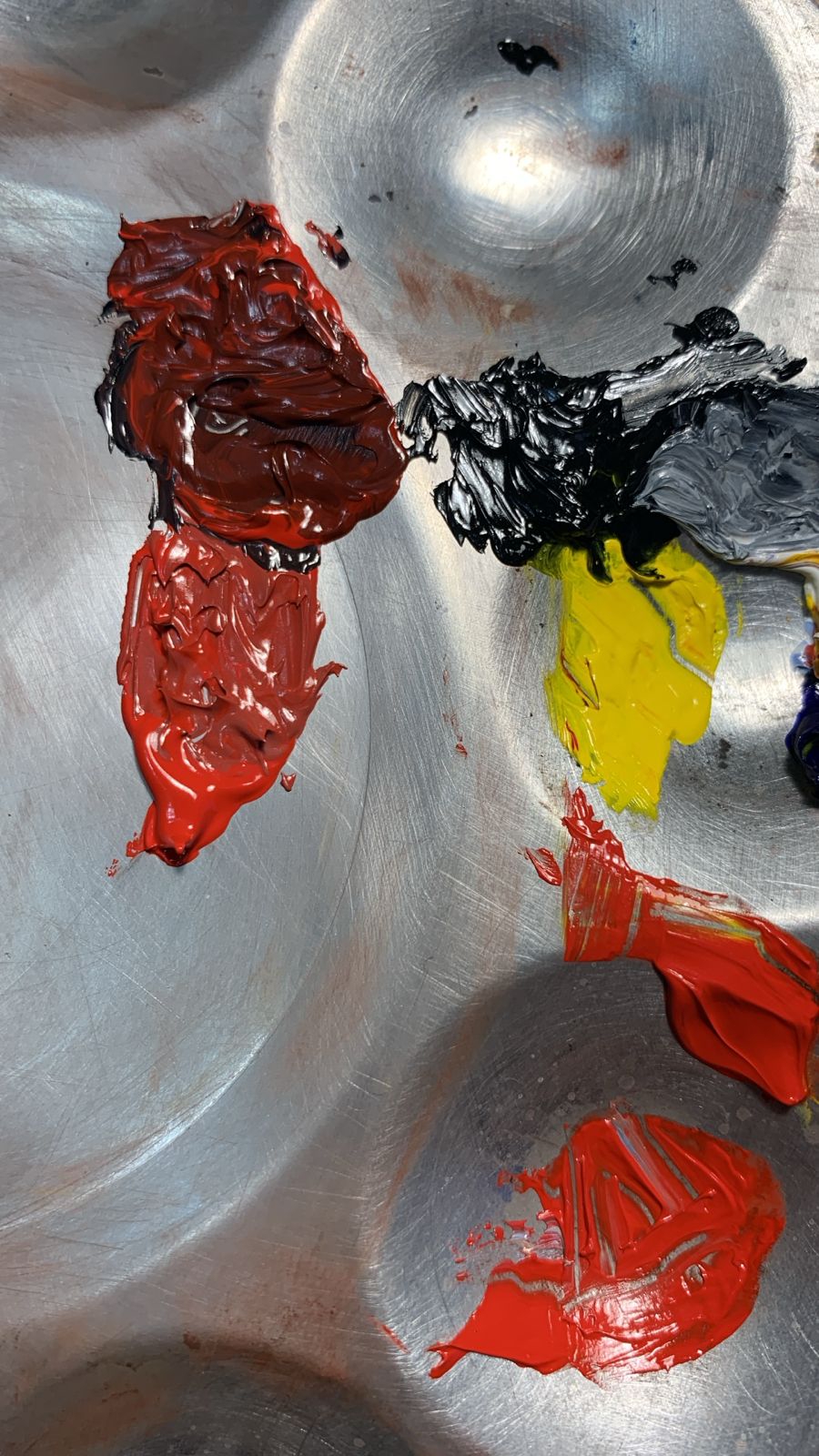 >>1151209 Попробовал нарисовать алую броню масляной краской, использовал темный кадмий как основу и еще индийскую красную как более темный цвет, плюс их комбинации с белилами и сажей. Как вам?