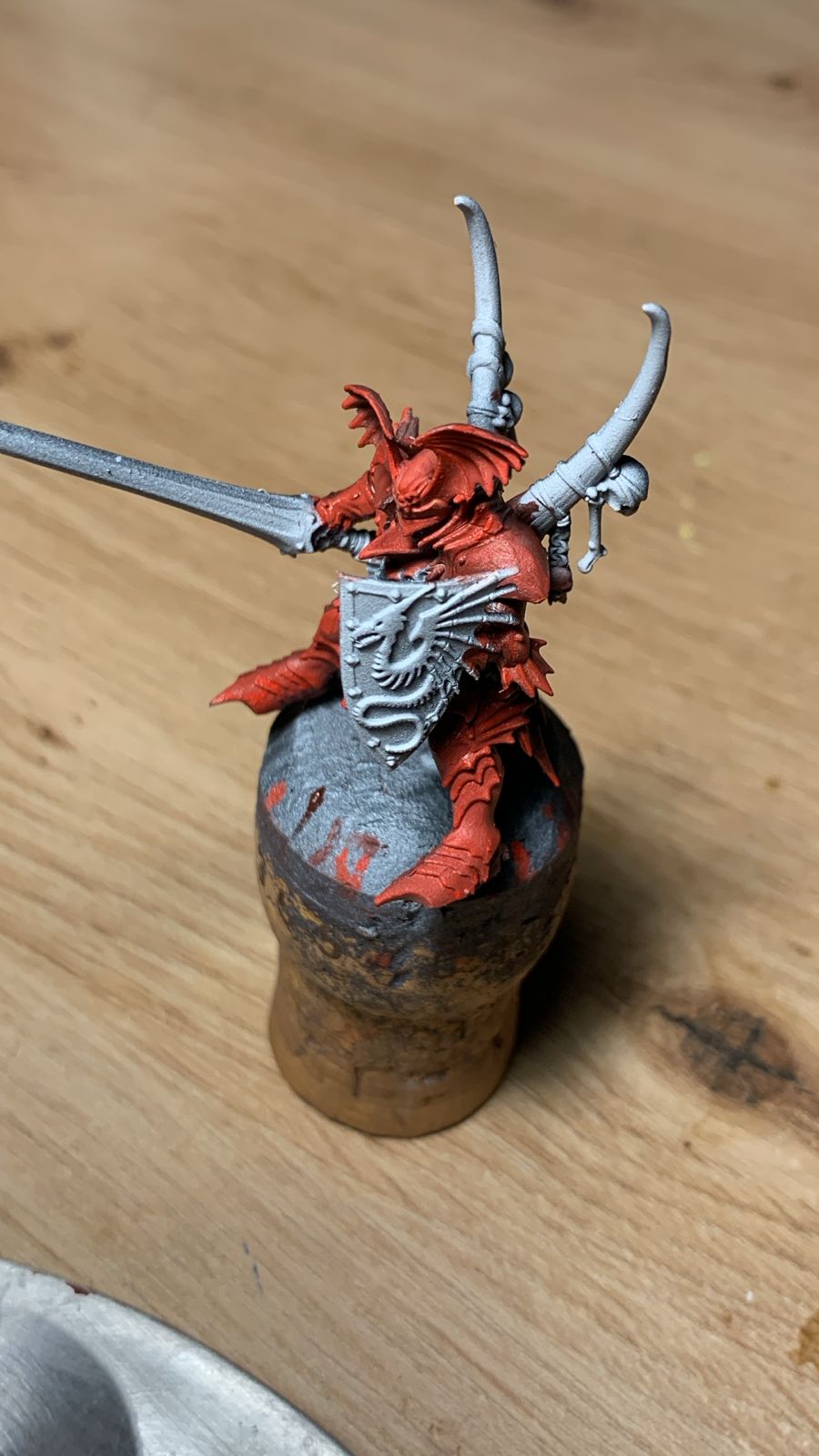 Попытка покраса брони рыцаря >>1151456 номер 2. Я думаю, хайлайты после сушки еще раз нанесу потому что по свежепокрашенному оно конечно не так ярко выглядит. Свет сейчас пытался сделать со стороны щита.