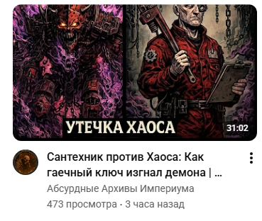 >>1154008 Есть древняя пропущенная через машинный перевод паста, про навигатора, который смотрел "голого Эмпиpяна в варпе". В оригинале видимо имелся в виду Имматериум, но ассоцииации эмпиpян, имперян, амперян, - сам понимаешь с кем. Вот и представили в воображении летающего в варпе армянина в меховых трусах.