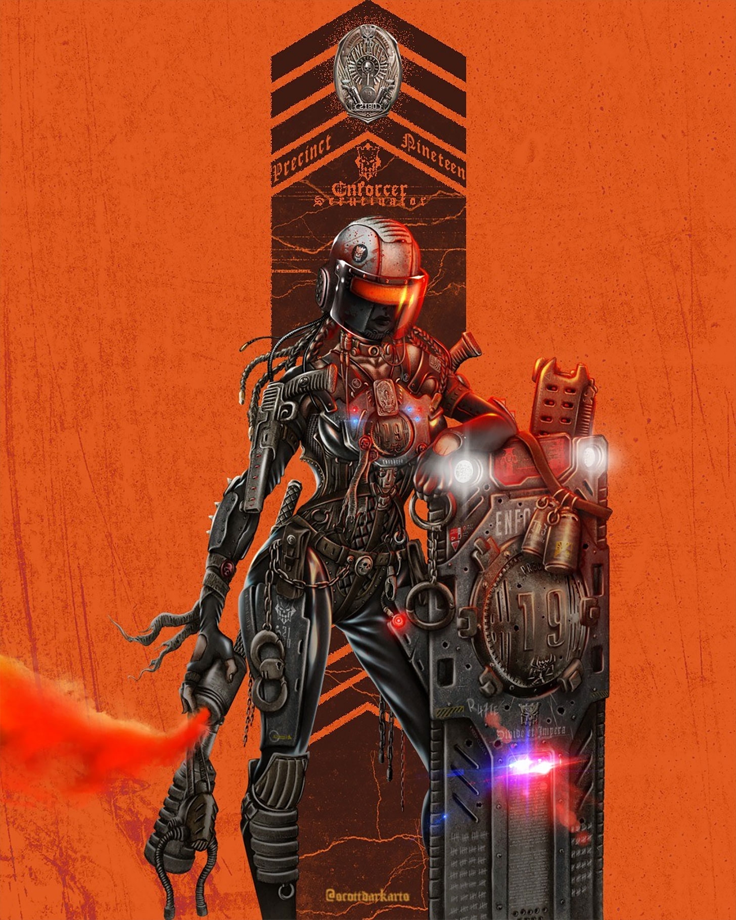 Урбанистический апокалипсис: гигантские мегаполисы из стекла, стали и бетона; соседство футуристических небоскрёбов и трущоб; плачевная экологическая обстановка (загрязнение, радиация, дефицит ресурсов); атмосфера упадка, обречённости, перманентного дождя и неонового света.