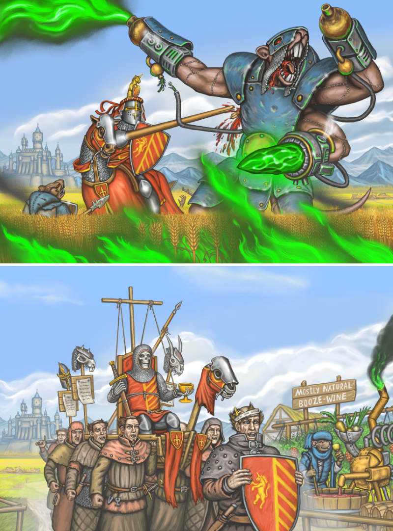 Там Матье с криком "Такбир!" бомбанул котёл дедушки вместе с десантниками и славными кадианскими танкистами. А Жиля так и помер, перд этим ещё раз обозвав Морта рабом и предателем, и впервые попросив у бати помощи, вспомнив их последний разговор - и всё. И, внезапно, император ответил, сгнивший Жиллиман ожил, доспехи починились и