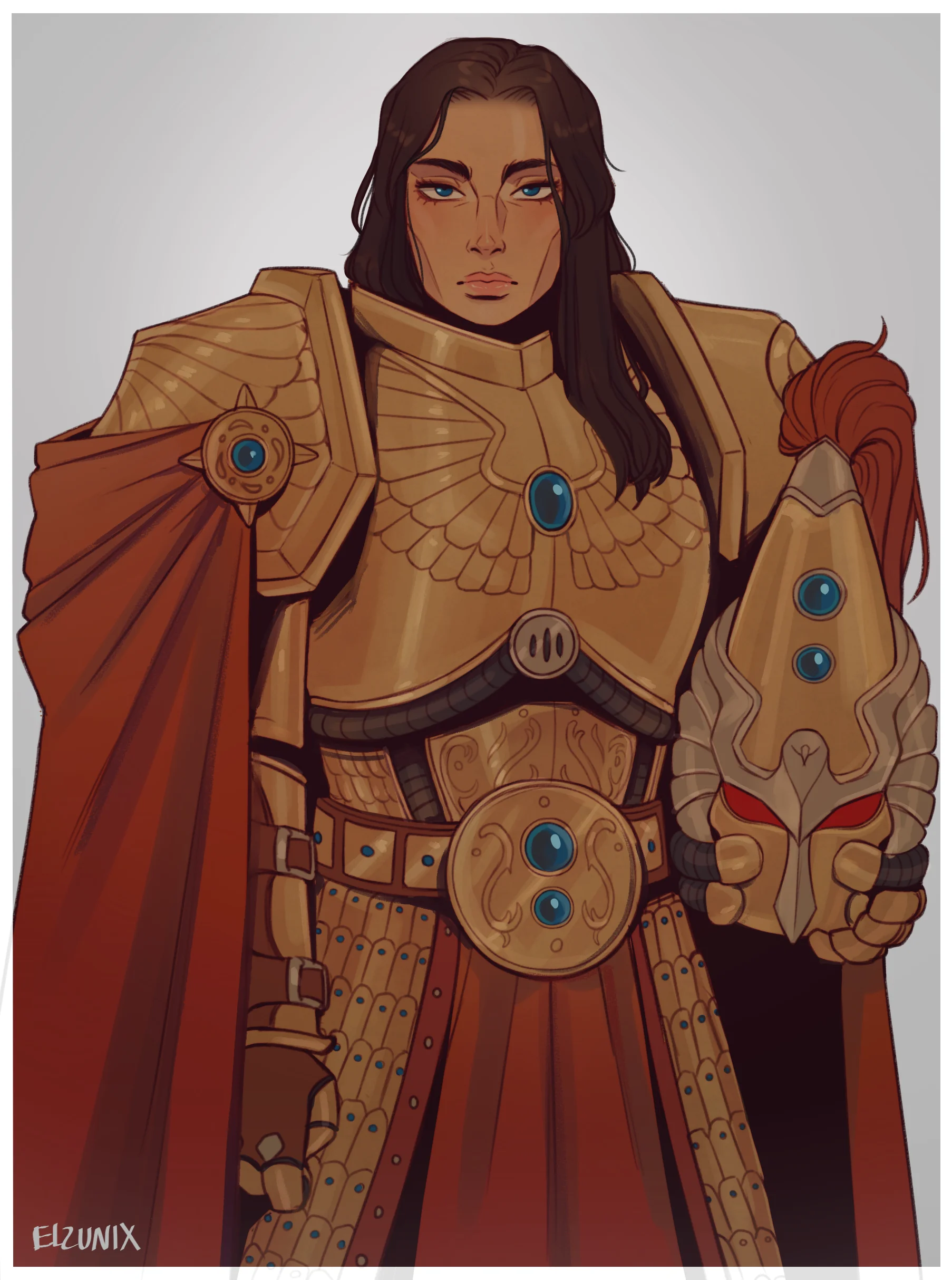 "...Воитель надел парадные доспехи — золотые, рифленые, украшенные имперскими символами — орлом и скрещенными молниями. В отличие от прежних подобных мероприятий, на этот раз он был вооружен мечом и болт-пистолетом, и Локен физически ощущал окружавшую его ауру властности.