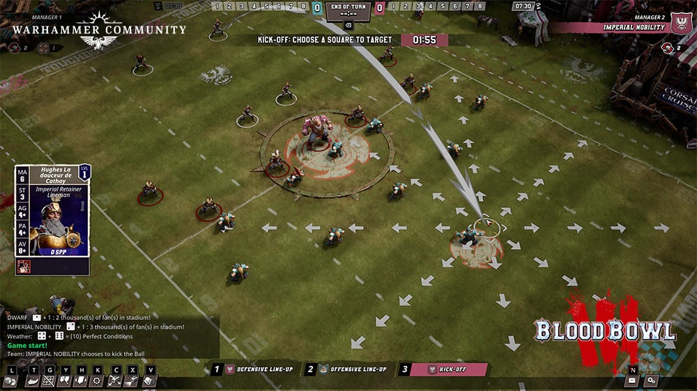 Итак. Чтоб в первой защите нам не похерачили лица на ЛОСе надо орков чем-то занять. На это есть навык "Кик". Запинываем мячик под зачетку оппонента. И он уже гарантированно помимо мяченосца будет тащить пару чуваков на охрану. Дабы ушастые не забежали и не отняли мячик. На лосе он сделает 3 удара + блиц. Плотно обжать орку не захочется ибо мяч без прикрышки - это мяч эльфов.