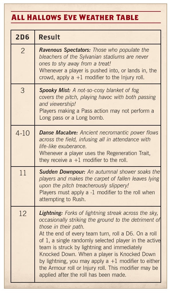 Что это, в Старом Мире наступил День Тайн (Гехаймниснахт или как-то так), а значит надобно закрывать двери и окна наглухо и сидеть тихо. Особенно в Сильвании, где в эту ночь происходит разгул наименее живого населения. И что делает это неживое население? Конечно же устремляется к ближайшим стадионам, чтоб погонять в Блад Боул! А значит, вот вам и пак правил для этого, берите свою нежить и устраивайте разборки по-сильвански. Остальным сасать сидеть дома.