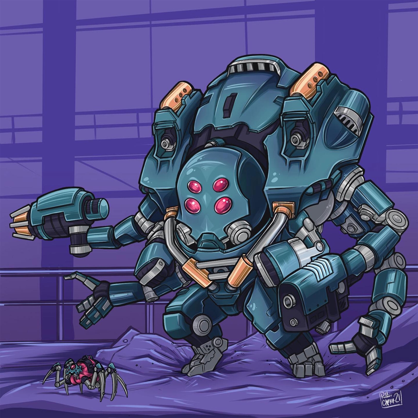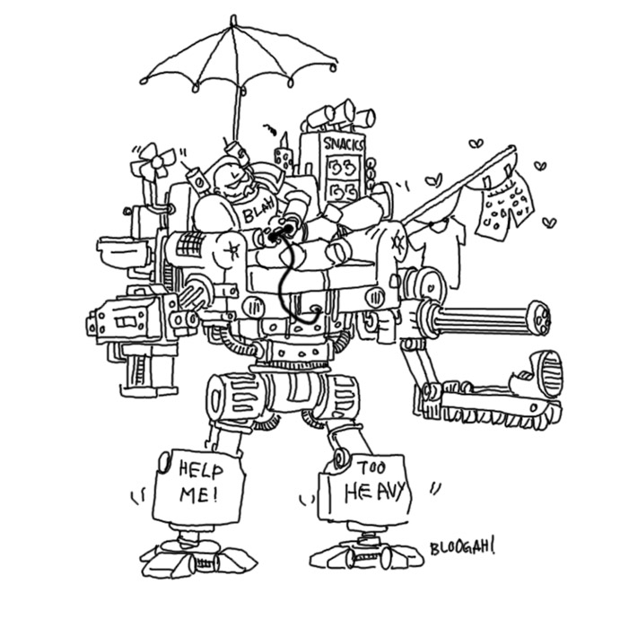 Чем проще дизайн, тем лучше. Красота — это когда отсекли все лишнее. А у вас тут всякого говна налепили. Хороший дизайн персонажа выглядит примерно как ведро на ножках.