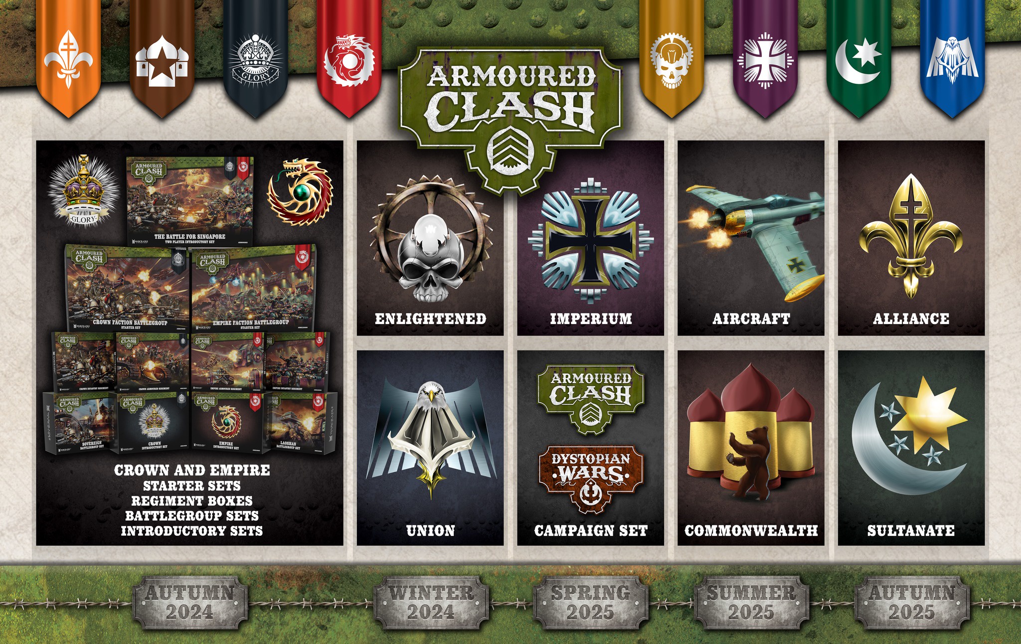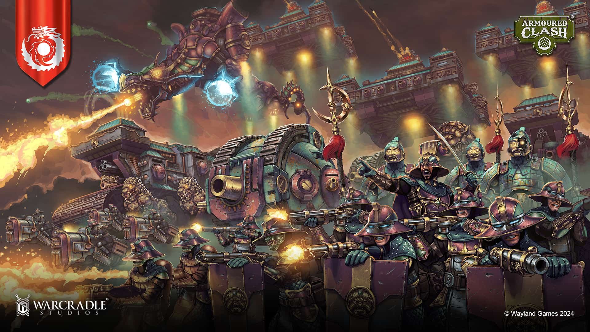 АРМОРЕД КЛЭШ вышел в сентябре в виде коробки БИТВА ЗА СИНГАПУР, где схлестнулись Корона Её Величества и Вечная Небесная Империя. С ней насыпалась мелочь в виде карт, кубов, токенов и шаблонов.