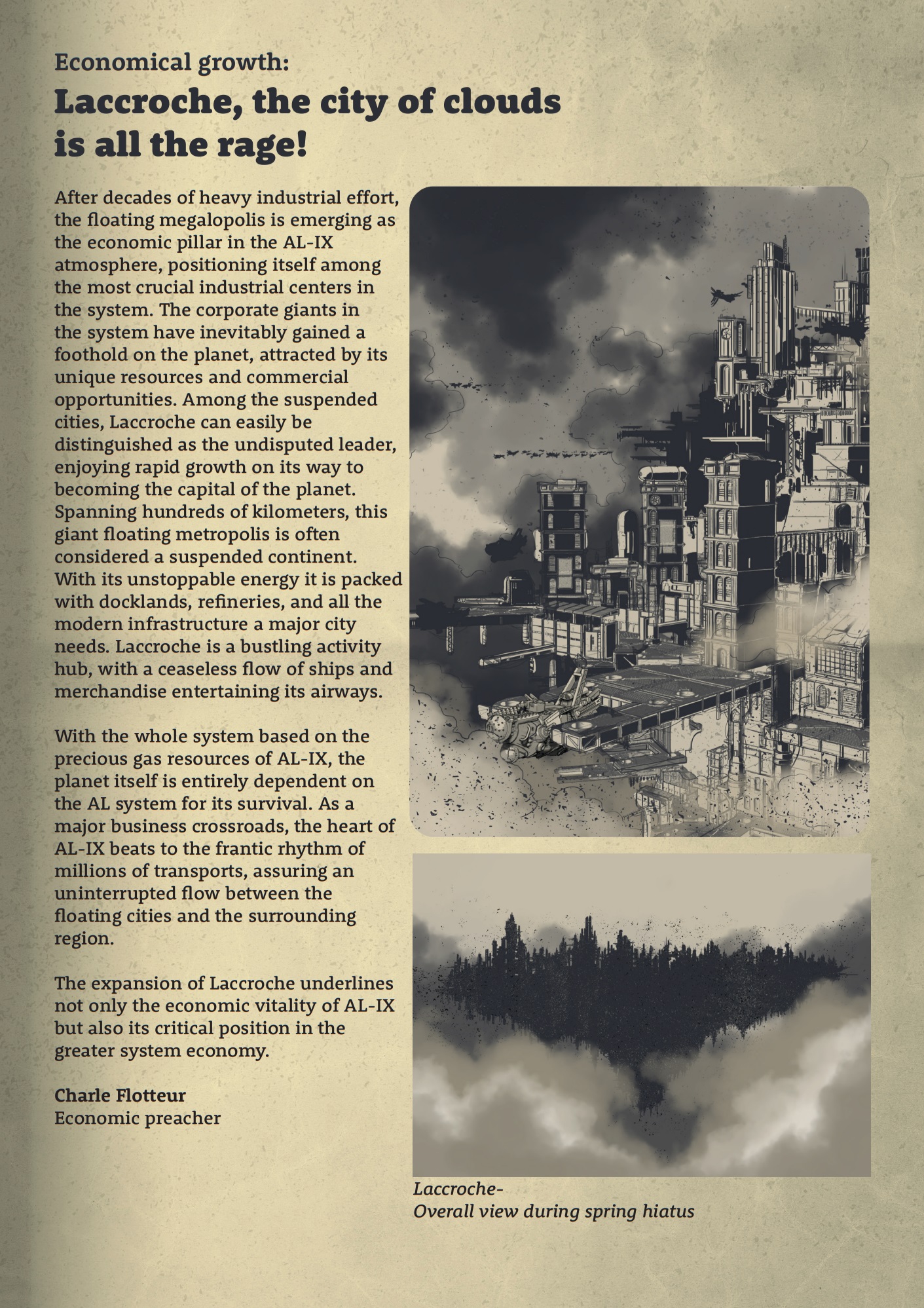 Действие происходит на планете Ал-IX, которая больше известна как Аликс. Сначала первооткрывателям Аликс показалась газовым гигантом, но позже выяснилось, что глубоко внутри есть поверхность. А еще выяснилось, что в многослойной атмосфере есть целый слой некоего газа, который необходим для антигравитационных движков, и производимый везде по уберсложной и дорогой технологии, тогда как тут его ведром черпать можно. Это положило начало колонизации Аликс, но до поверхности никто так и не добрался, потому что шторма и ядовитые слои атмосферы, поэтому города и станции летают на халявном газу в безопасном слое. Новый фронтир, хуе-мое, бизнес-компании навозят людей, но тут пиратство ВЖУХ! и понеслась движуха.