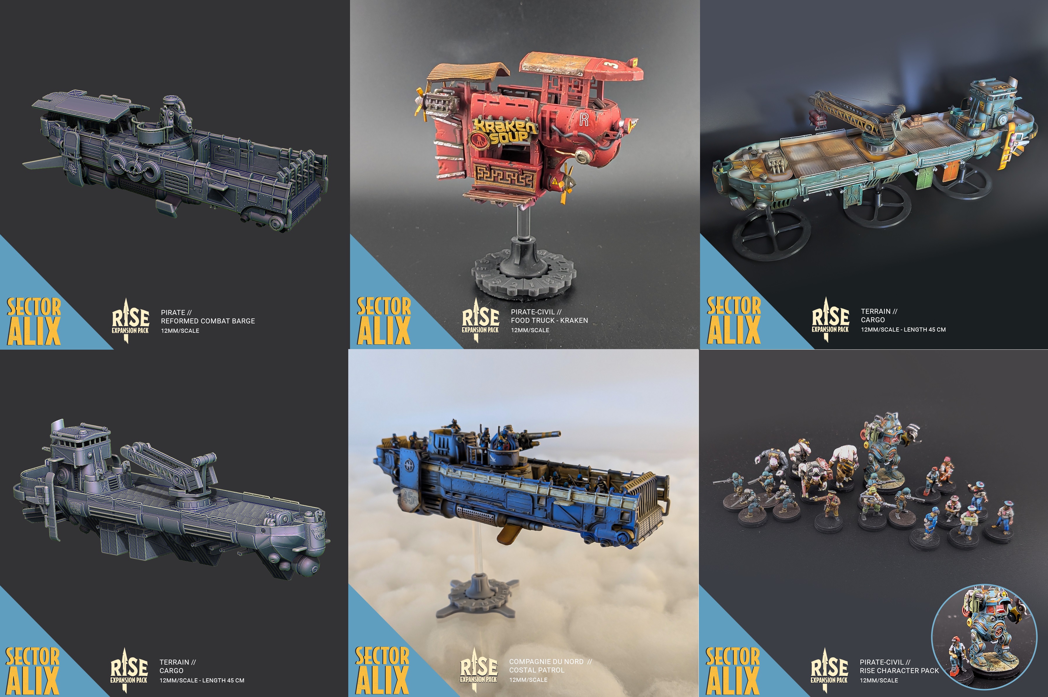 Обнаружился куда более интересный вариант у Бишока, он же Cendre, известный своим печатным стаффом для 6мм вахи. Чувачок взял и запилил 12мм ролевой скирмиш про дизельпанк посудины - Sector Alix, где пираты набигают на летающие порты. Правила, правда, зажопил, что вместе с хуевым продвижением продукта его занятную, в целом, идею и погубит. Яскозал. Вот на такую аэронавтику я б посмотрел