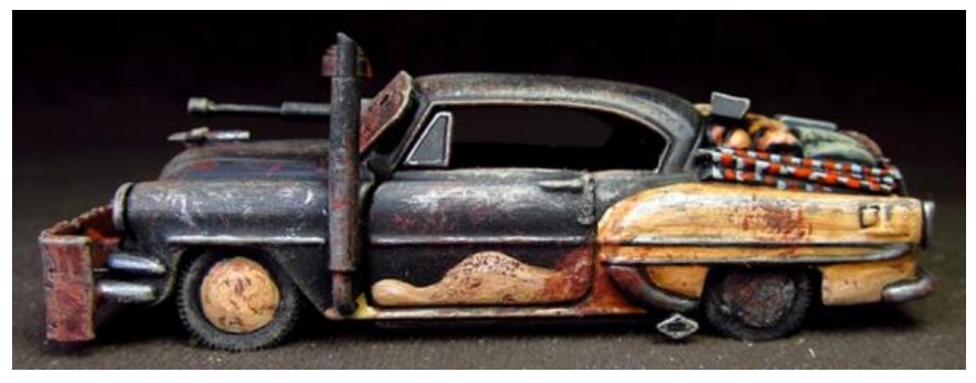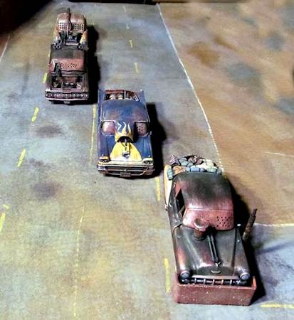 В копилку гоначек - игра с незатейливым названием Machinas. Особенностью является то, что собирается из бумаги, приложенной в рулбуке, ультранищееб вкат. Конечно, при желании карточки с рисунками машин можно заменить на конверченые под постапок модельки.