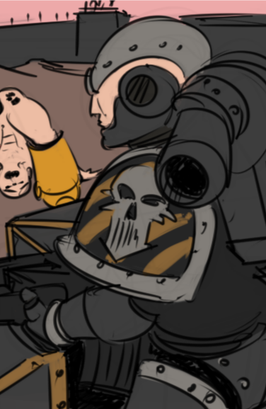 Спокойствие космоса разорвал очередной варп-переход, раскрывший в пространстве рваную рану в имматериум на время, пока карательный флот выходил на орбиту Эстарба-II. Незванные гости не стали неожиданностью для Автоботов - вот уже несколько дней генерал-фабрикатор Лукол и Гетад Серп вели переговоры с Эрци Сильверболтом, старшим адептом и посланником от мира-кузни Остарб, находящегося в соседней системе звёздного скопления "Тупик Габала". Техножречество Остарба, облачённые в белые с красным и желтым обрамлением робы люди-машины, были крайне недовольны задержкой поставок, и уже через один час просрочки прибытия конвоев с грузом тяжёлых экскаваторов и буровых установок снарядили в систему Эстарб свой тяжёлый крейсер механикум "Шестнадцатеричный Батыр", сопровождаемый половиной дюжины фрегатов. Вид "Феррум Циркули" поумерил воинственность жречества, а заверения Лукола в правильности пути снабжения сил Астартес убедил не отправлять запрос о помощи ближайшим подразделениям имперской армии и флота. Однако жадность и прагматизм Эрци унять не удалось, и теперь жречество, совместно с наместником от автоботов, назначенным всвязи с тем, что командующий гранд-батальоном был занят обустройством додекадолбильни в крепости Эреб, обсуждали возможные варианты замещения техники иными паттернами, иными моделями, или же отсрочку, оплаченную фрагментами СШК времён Великого крестового похода. Теперь же, когда нехватка поставок побудила действовать и имперскую армию, на орбите мира кузни находились единовременно два крейсера и три транспортных судна астра милитарум, крейсер механикус, и боевая баржа космодесанта. Гвардейцев, как и ожидалось, беспокоила нехватка автоганов и стабберов Эстарб-III паттерна, запчастей для часовых и химер, боеприпасов всех сортов и калибров. Стоит отдать должное полковнику Эрке Леовайнену, он не стал предъявлять требования астартес, хотя их геральдика и смутила его. Незаметно для остальных участников переговоров, он послал запрос на Терру, и получил ответ, в котором указывалось, что орден Автоботов лишь недавно подал запрос о регистрации всвязи с основанием ордена, запрос был подтверждён магистром ордена Пауэрфистов и на Терре никаких вопросов не вызвал. Но что-то подсказывало Эрке, что дело не совсем чисто. ...Через два дня всё было решено. Гвардия получила необходимые поставки, пусть необходимое снаряжение и было позаимствовано для них у заводской гвардии и ауксилии гранд-батальона, несмотря на все попытки Гетада, ни одно из отделений гвардии не присоединилось к Автоботам в виде ауксилии, по итогу пять кораблей покинули систему и направилось, судя по перехватам донесений астропатов, на окраины сегмента Санктус воевать с орками. Жрецы Остарба оказались менее сговорчивы. Взаимные угрозы, обвинения в сумашествии, водопады данных, описывающих тяжесть ситуации лились непрерывно из вокодеров обоих старших адептов, Луколу оставалось лишь обозначать нужды ордена и накладывать вето на самые абсурдные предложения Сильверболта. По итогу делегация Эрци покинула систему, уничтожив огнём лэнс-орудий сеть спутников Эстарба-III, набрав полные трюмы крейсера техникой, перехваченной с межпланетного транспортника, и пообещав напоследок ещё напомнить о себе. Гетад устало покачал головой, сидя в своих покоях. Афедрон бу