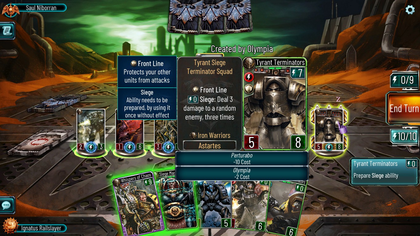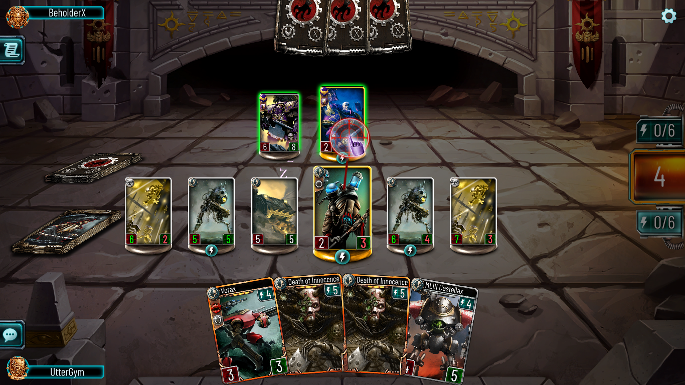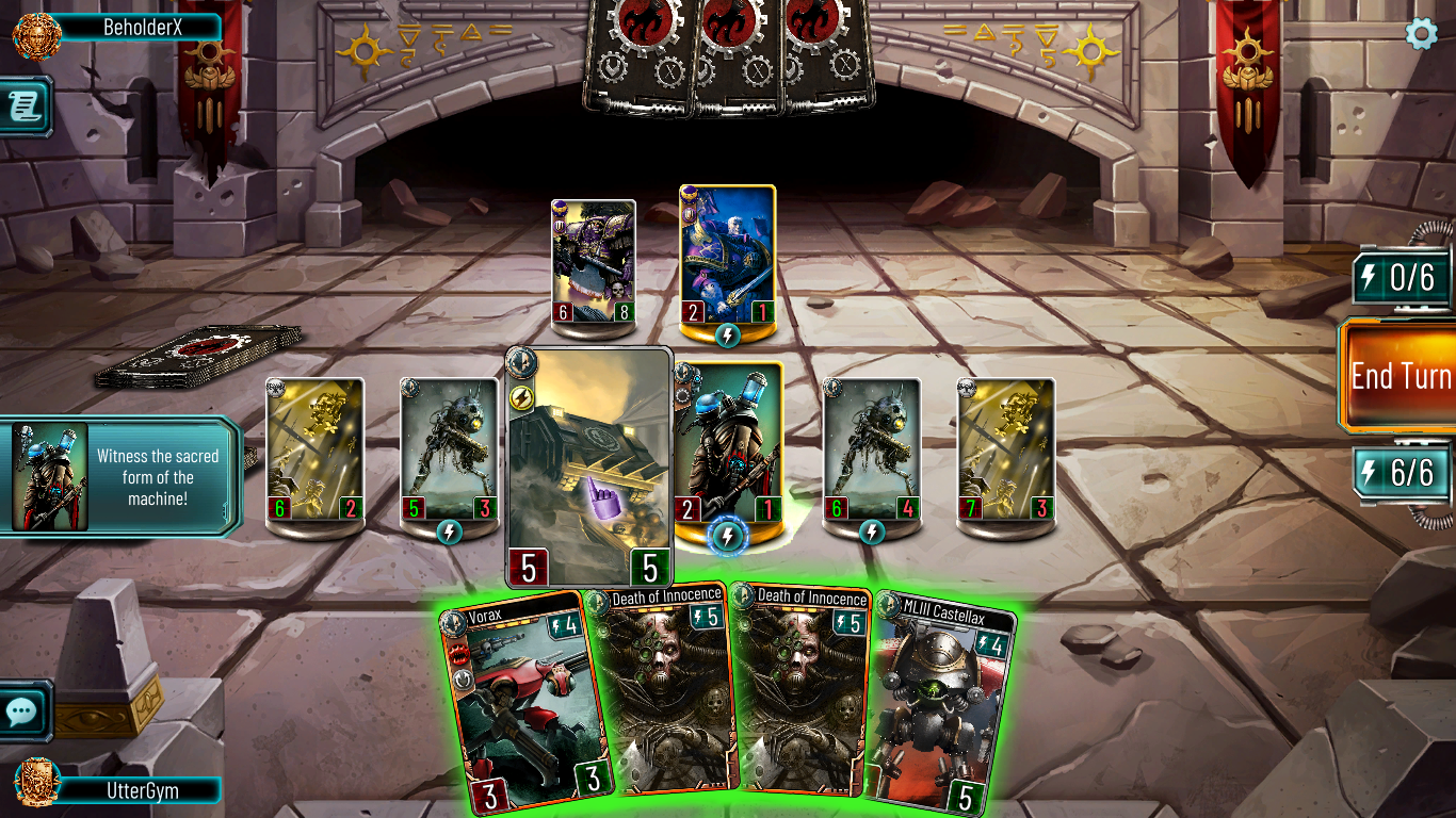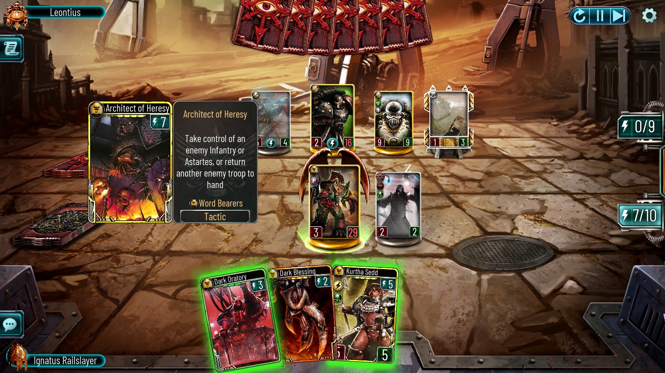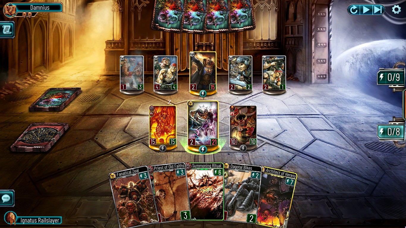 Или у ТС: вроде и активировать в затяжной катке не так сложно, особенно если играть тушки, вроде 4/4, которые сходу ПС генерируют, и награда нормальная - псайкер 3 командиру это пиздато, но генерация психосил в руке - это кал говна, потому что миссия для затяжной игры, но: 1. ты вынужден каждый ход выкидывать минимум 1 психосилу, причем рандомную, банально чтоб рука не забивалась - ты не можешь копить пси-энергию для жесткого раскаста, ты ВЫНУЖДЕН её тратить. Конечно, можно позволить ей просто сгорать, но тогда и ты сам не можешь чесать деку (об этом я еще ниже напишу), и тебе могут карты сжечь лектицио. 2. если обычно книга Магнуса полезна тем, что ты просто имеешь в деке 3 психосилы - ремув, астралка и добор - и гарантированно при прожатии книги получаешь все их в руку, но после миссии тебе в руку легко накидает гамна; 3. несколько психосил добирают карты, исчисление - сразу три, и видение будущего - одну. То есть ты их даже разыграть нормально не можешь, чтоб руку от лишних психосил почистить. Какие же ЕГ дауны просто. Сделали бы спецкарту, как у кустов копье - разыгрываешь её, скажем, за 3 психосилы - и на выбор тянешь психическую спеллу; не разыгрываешь - она сгорает в конце твоего хода. Но нет, надо всрать миссию, нельзя, чтоб у фанового легиона была хорошая миссия.