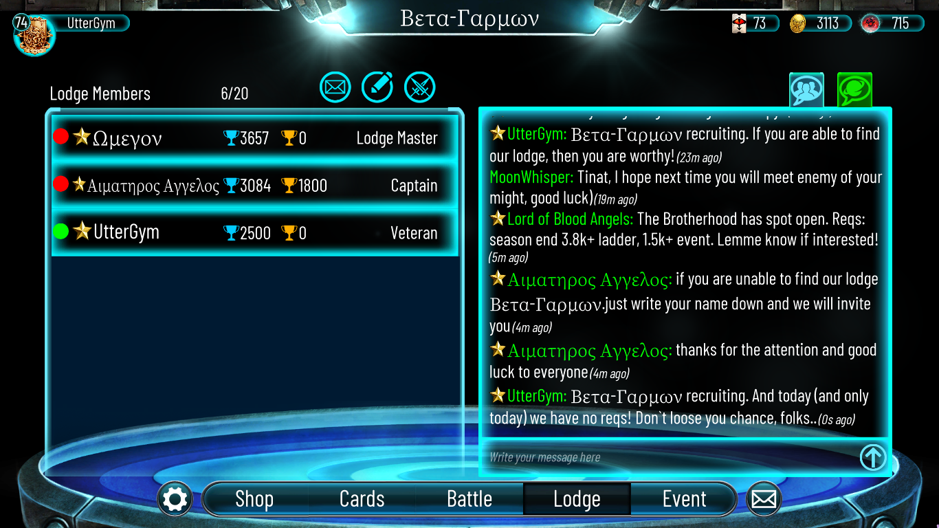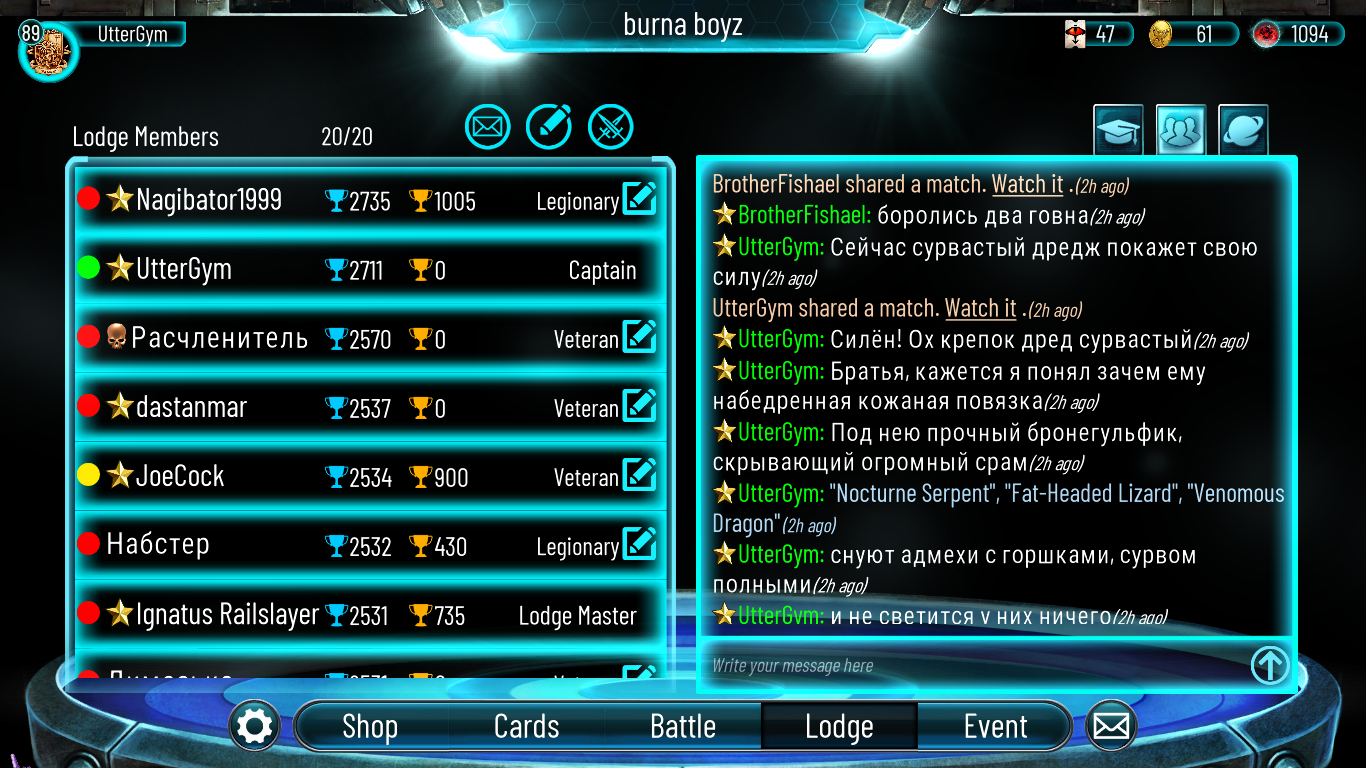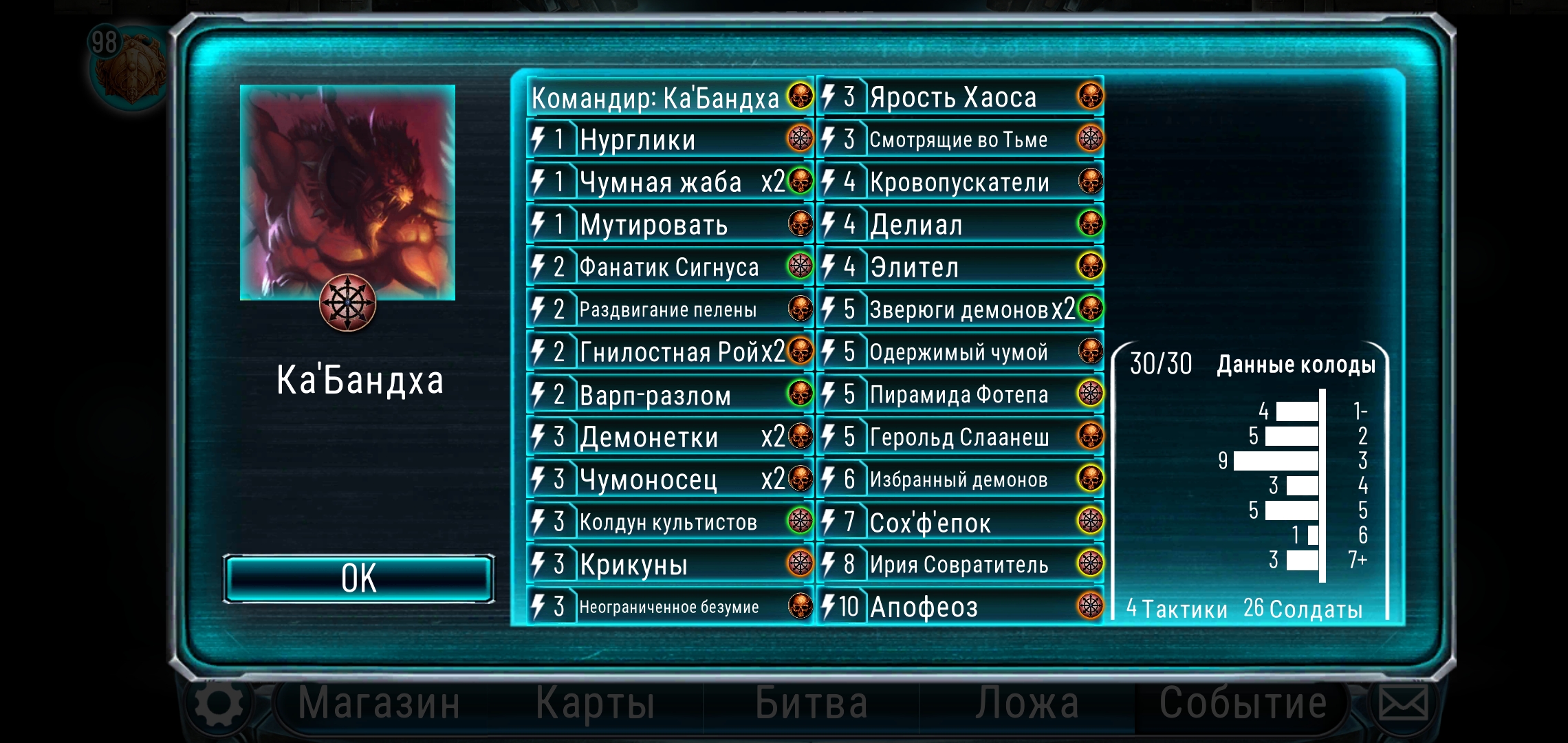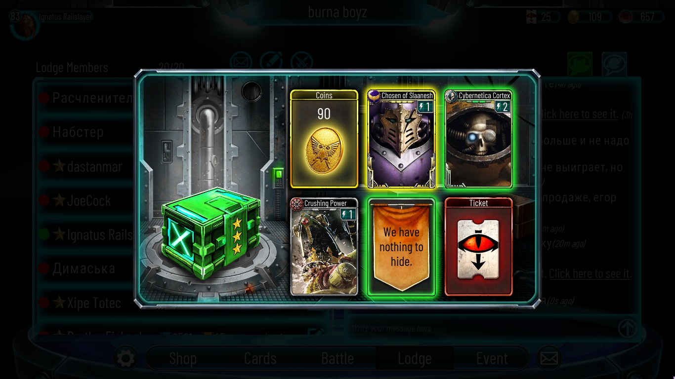 ДЛЯ ТЕХ, КТО В МЕТАЛ БОКСАХ: В Легионах вышла обнова 2.0. Изменили визуал. Добавили ачивки и компании против ботов, где ты последовательно собираешь деку легиона (после победы один раз выбираешь, что добавить из трёх вариантов, как на событии).