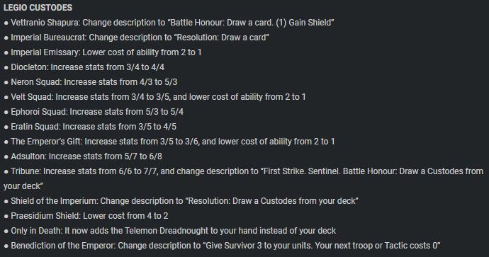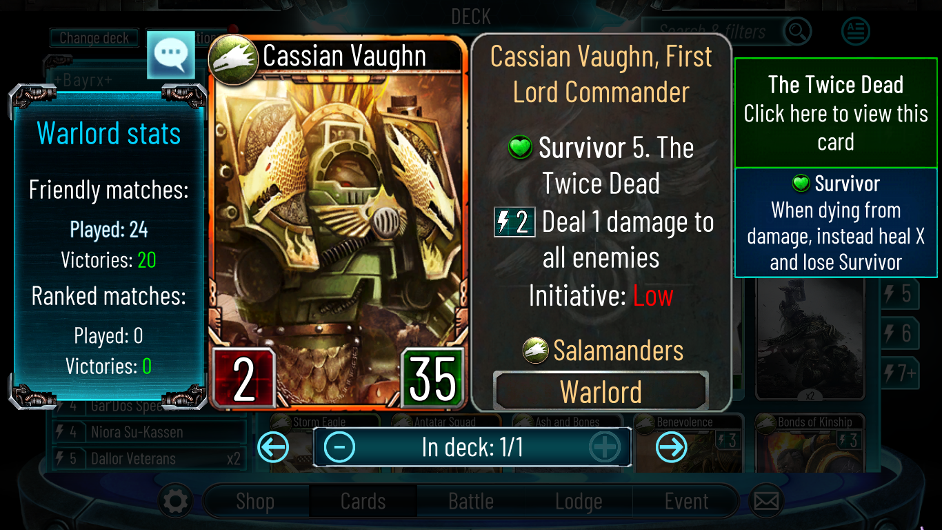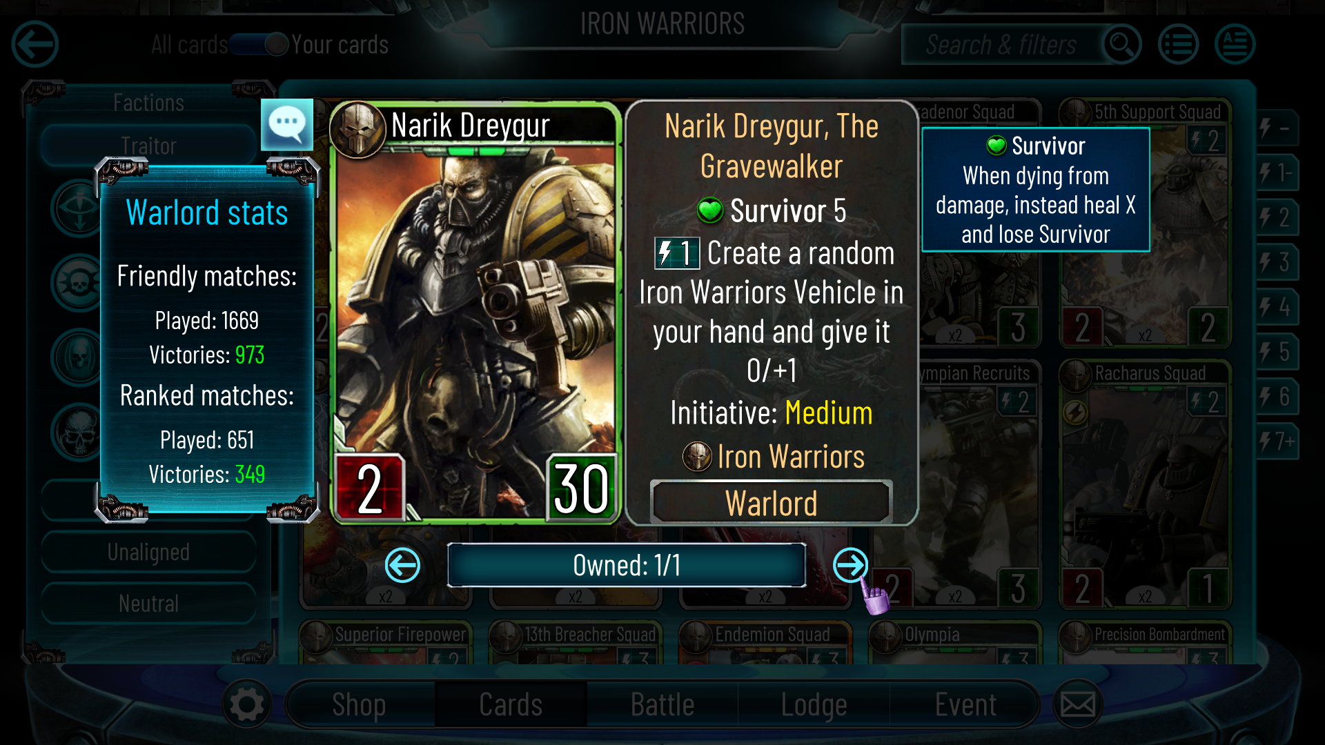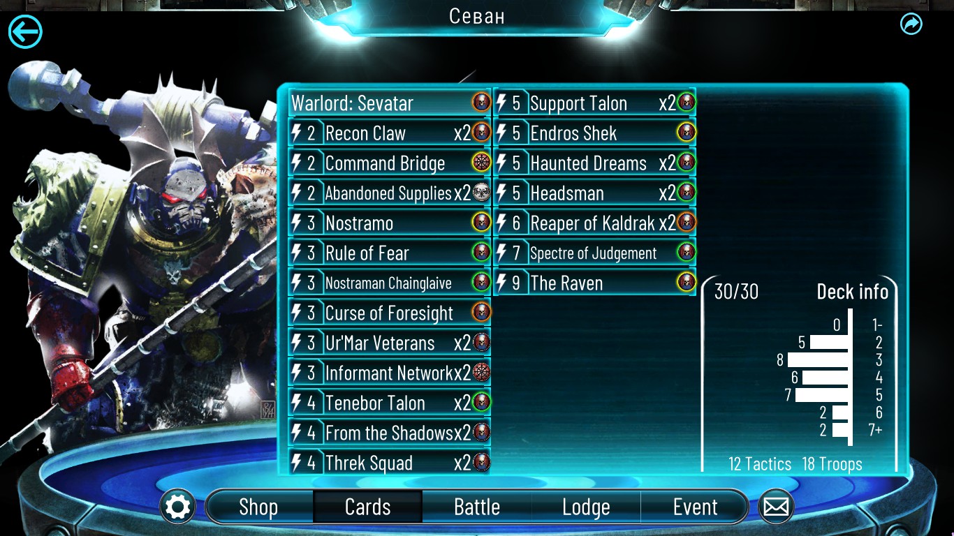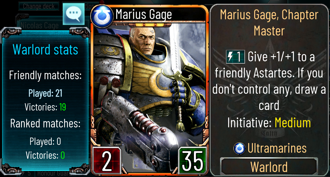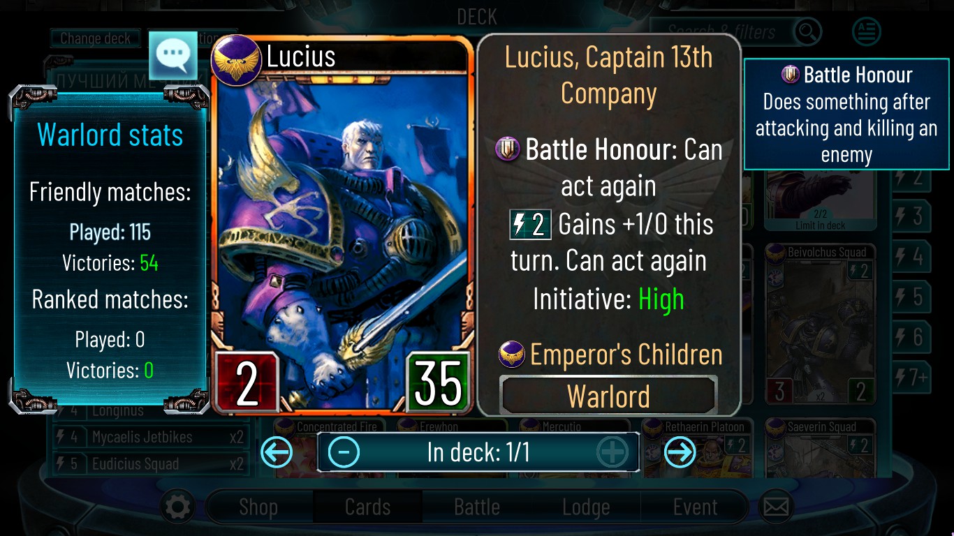 Кто у нас еще говенный? Абаддон из-за средней ини и ограниченной абилки; Люций из-за жалкого для эпика хп при его основной абилке в "биться лицом" - хоть бы спецкарту дали что ли; у ГС все играют, просто медленно; Ерлен (гнида) всё-таки слишком тощий, чтоб его не успевали переехать; Нев у Воронов ну такой, сам по себе унылый; Неметор у Сала слишком специфический, тактикулярные колоды его в рот ебут, плюс он медленный, но против агры может и потянет; Булвай тоже только при хорошем заходе и незаходе оппонента играет, бля, много командиров, которые играют слабо.