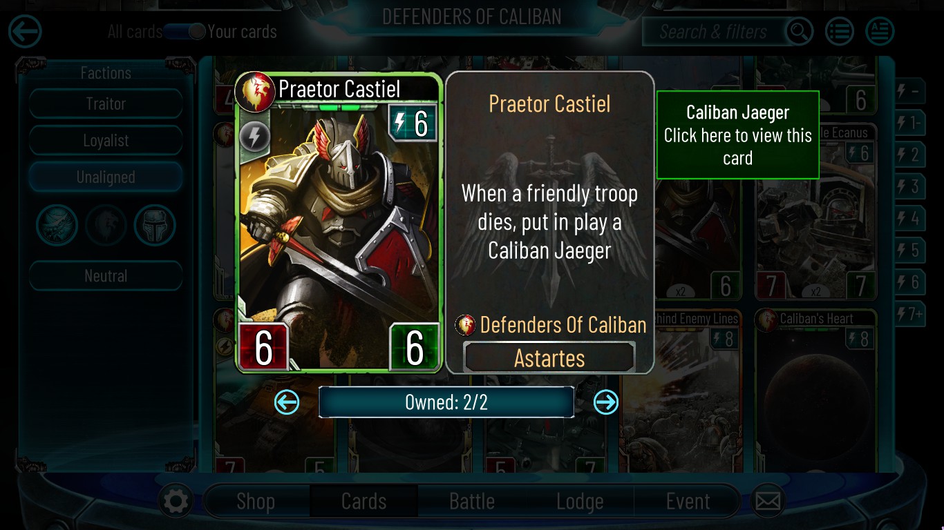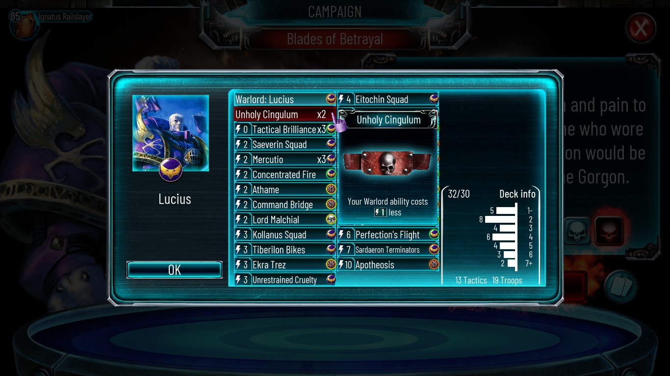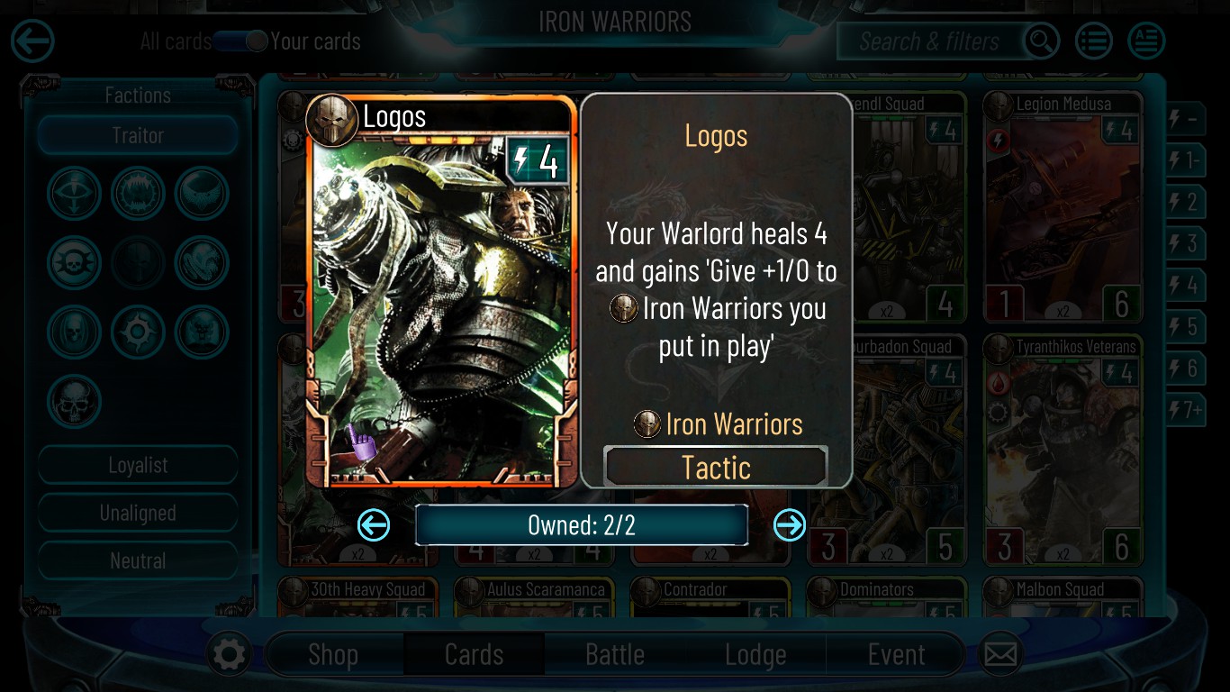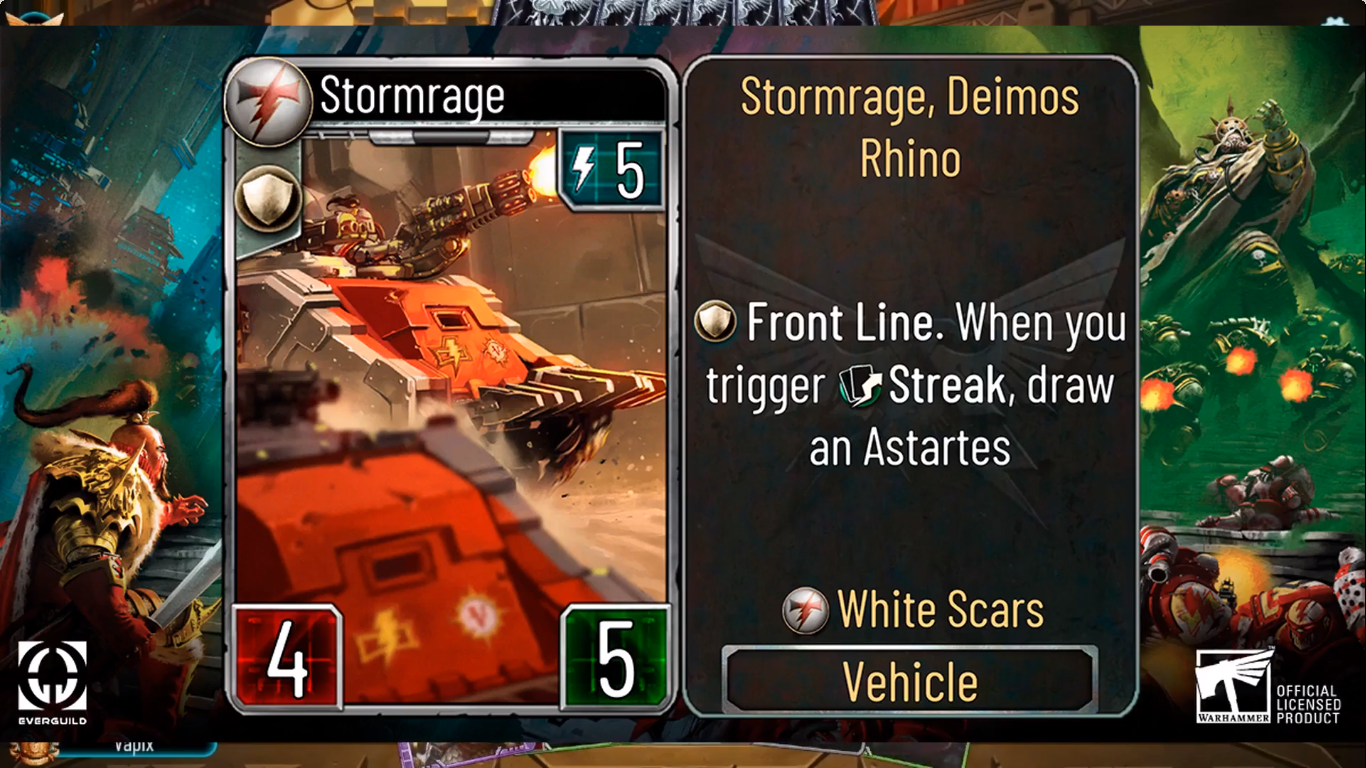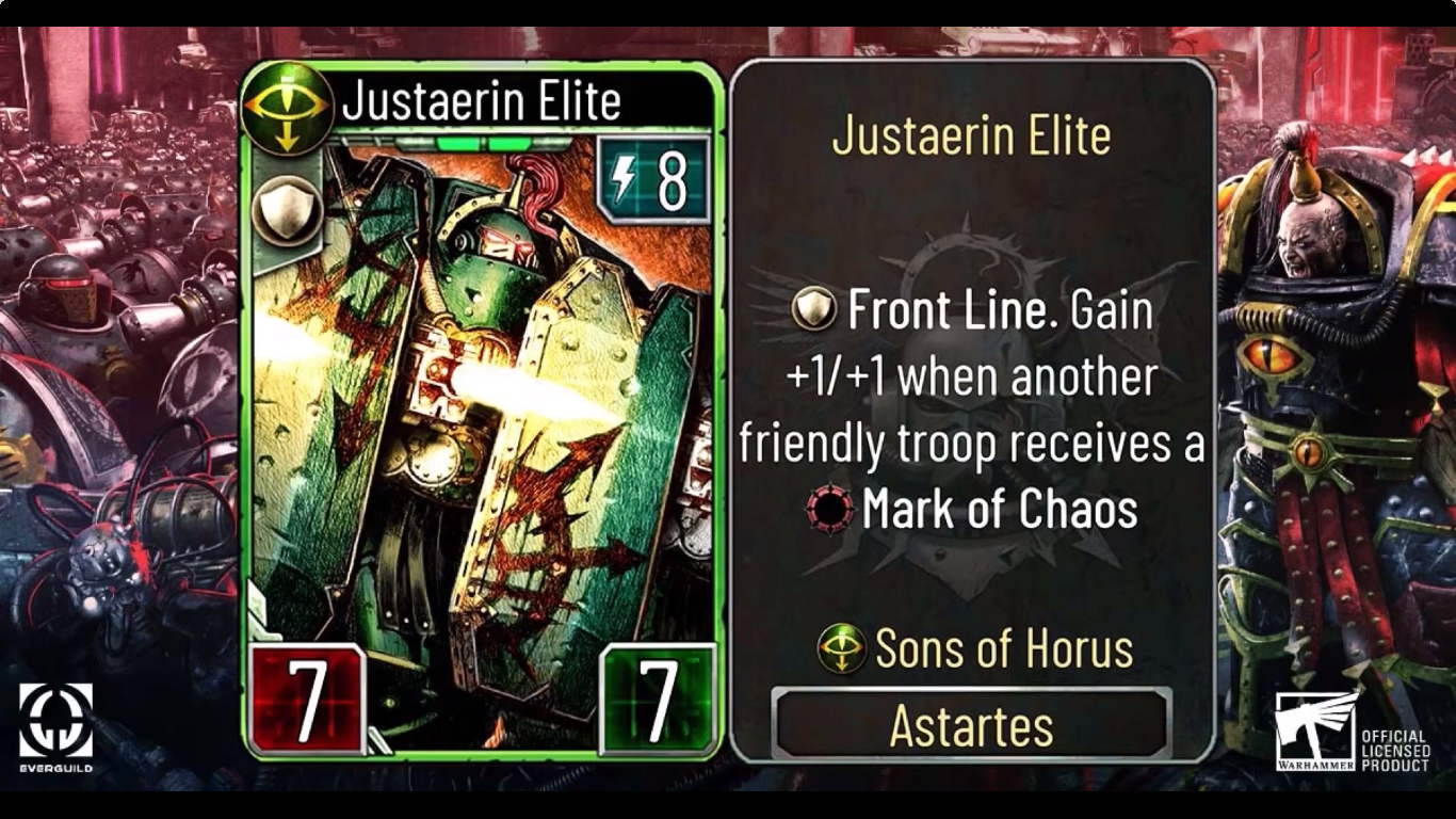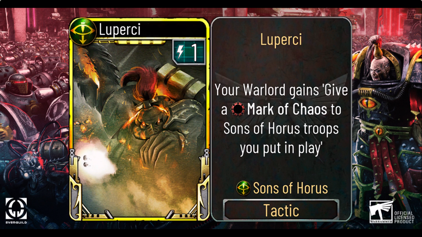 >>123268 Потому и добор стоит 2, что он примарх. Хуисосы в ЕГ думают, что 40 хп - это настолько невъебенный бонус, что давать командиру адекватную абилку и не надо. А у Левы мало того, что Расплата трудная, так еще и говно, потому что он на ней чисто проебывает ход, получая +1/0 - и после этого ему нужен стол для её прокаста, чтоб баф дать, который к тому моменту или снесут, или который и без расплаты зарешает. Лева должен быть такой: абилка за 2 маны - выберите крыло и возьмите из колоды астартес этого крыла, если нет в колоде - создайте. Расплата стоит 18 и удешевляется на 3. В Расплате Лев получает +1/0 и способность за 2 - "Обновите Квесты ваших солдат (в смысле - выполненные квесты зарядите заново) и дайте +1/1 всем солдатам с чертой Квест").