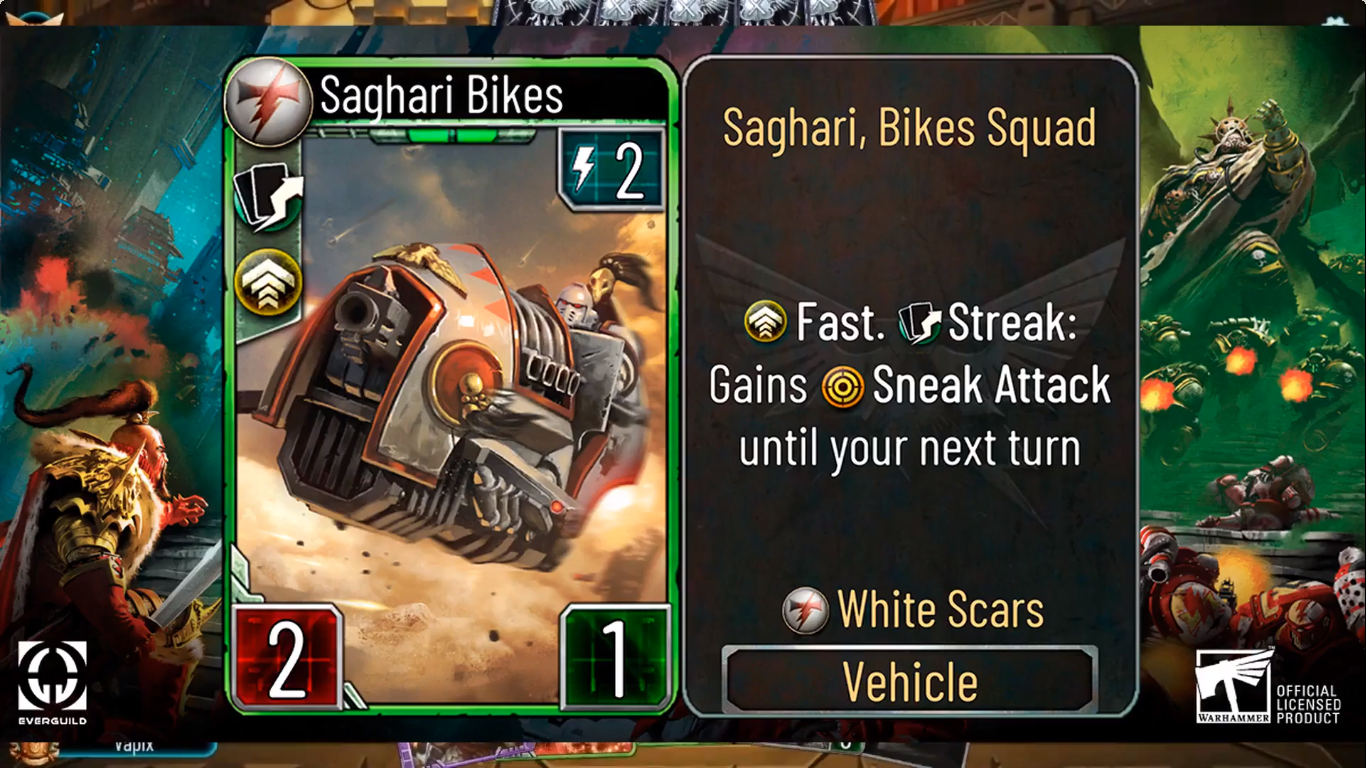 Но вообще недокручено. Нужно больше тушек, похожих на дреда Марцела, который имеет и таран, и отвагу, было бы логично, например, той же 4/4 дать не "Отвага: наносит 2 урона или исцеляет союзника на 2 единицы", а "Таран: наносит 2 урона или исцеляет союзника на 2 единицы. Отвага: эффект Тарана накладывается повторно". Или 3/3 байки чтоб имели описание "Таран: наносит 1 ед урона. Отвага: наносит 1 ед. урона всем врагам" А 5/3 рывок за 4 маны лучше бы имел встроенный обход с фланга, а с Отваги неукротимость. У чертей ебучих Сирот 5/3, например, именно поэтому и играет, потому что в большей части случаев если нет полноценного рывка - то и крылья нахуй не упали.