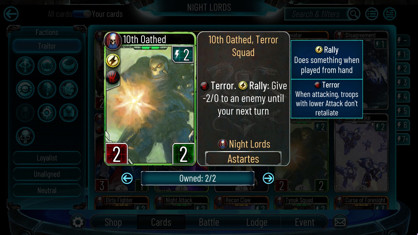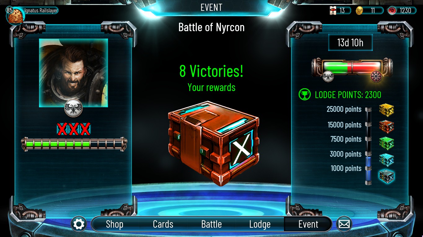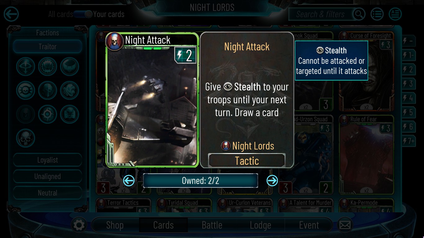 В нынешнем событии и с новым типом сборки колоды ночники себя показали просто замечательно, ибо против них - хлипкие сёстры и мутировавшие астартес с несунами. ИЗ НОВЫХ ЛЕГ ТОЛЬКО КАРТОНКИ БЛЯТЬ!