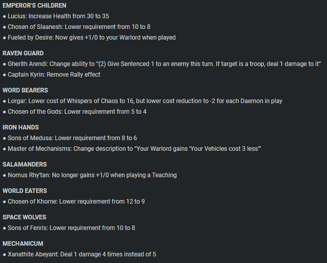 Для тех, кто не в курсе - произошол ребаланс Тысячи Сынов. Если раньше они были тактиктульным легионом с бесполезной трупсой, теперь разрабы захотели сделать трупсо-тактико ориентированную фракцию. Сработает? Я хуй знает, пацаны, я на них вообще не играл.