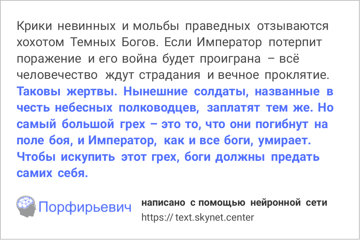 Насколько всё таки уровень развития зависит от восприятия информации. Один шизик пруфстер до сих пор с пруфами на каждый пост носится, не в силах прочесть простейшую аналогии в книге и не понимая, что проблема в нём. Другой хочет, чтобы примархи ибашились карочи и ни ашибались и эмоции ни проявляли никак ани жи роботы анилюди!! как шварнегер карочи ибашит там тирминатор крутой нах!!