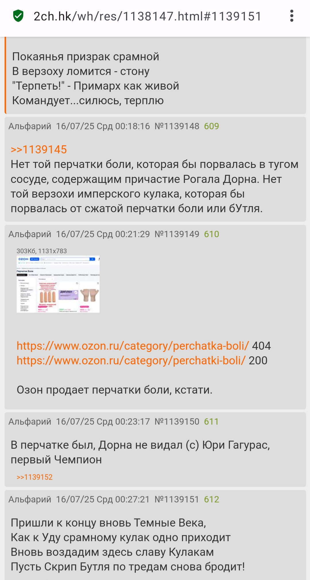 >>141068 >ПРОТУБРЫРО СО СВОИМИ ОКОПАМИ МОЖЕТ ИДТИ НАХУЙ! ЕГО УКРЕПЛЕНИЯ КАРТОННЫЙ КОРОБКА ПО СРАВНЕНИЮ С МОИМ ЗАДНИМ ФОРТОМ! Какая же адамантиновая непоколебимость в каждом слове! Примарх своё нутро превратил в блокгауз воли Императора. Проклятый Пертурабо, коль не растерял остатки мозгов в помойных трущобах своего варп-мирка, должен понимать что ловить ему тут нечего. Силёнок не хватит даже царапинку оставить на верзохе, какой же жалкий малахольный трайторок тьфу