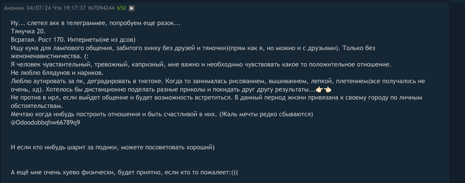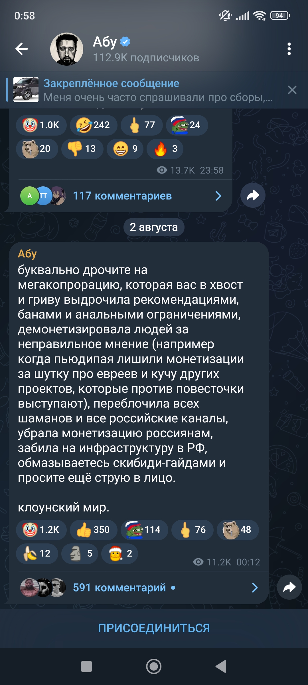 Мой телеф сдох! Откинулся копчёный бродяга, а с ним и все контакты и пароли. Но я не обломался от темы такой, я подумал крепко своей головой. И достал из мешка давнокупленный телеф из ломбарда. Это был аппарат какого-то хача-татарина со всякими его фотками, приложениями тиндер и баду, сохранёнными паролями к гидре и перепиской с 40 лвл милфой в телеге (он отказался лизать, милфа отказалась сосать). Татарин похоже простой туповатый глубинарий. Зачем же он брал микрокредиты и сдал телефон? Возможно - наркозависимость. Я тщательно продезинфицировал телефон, удалил тиндер, баду и фотки (остались лишь фотки паспорта). Zzz! Brr-brrr! Brr! Z K i B i D i ! ! ! Король King умер, да здравствует король! https://youtu.be/ozItkWFveAM?si=848WfFhNgxgSBhcC