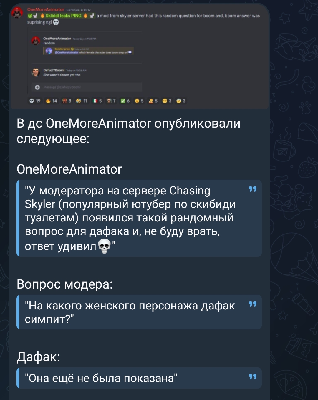 Комментарии от анонов: ТЕКУЩИЙ ПОЛОЖНЯК И СВЕЖАЙШАЯ АНАЛИТИКА НОВОЙ СЕРИИ 1. Дафак на 9 секунде 2. То самое кресло из спойлера укатилось за фон. Оно походу живое и это жирнейший намëк на кресломенов 3. Астро хуярят вообще всех скибидистов без разбора, а не только соратников Джимена. Плюс видим апргрейднутого скибиди-страйдера 4. Очень странная хуйня у мини-джаггернаута. Похоже на собачье/кошачье ухо, будто Дафак решил воплотить в жизнь рофлотеорию про кота-джаггера. Алсо, может быть просто оторванным скальпом 5. Большой джаггер горевал по убитому микрочелику. Видать сынок ëбаный бачок отбросил (пик не влез)