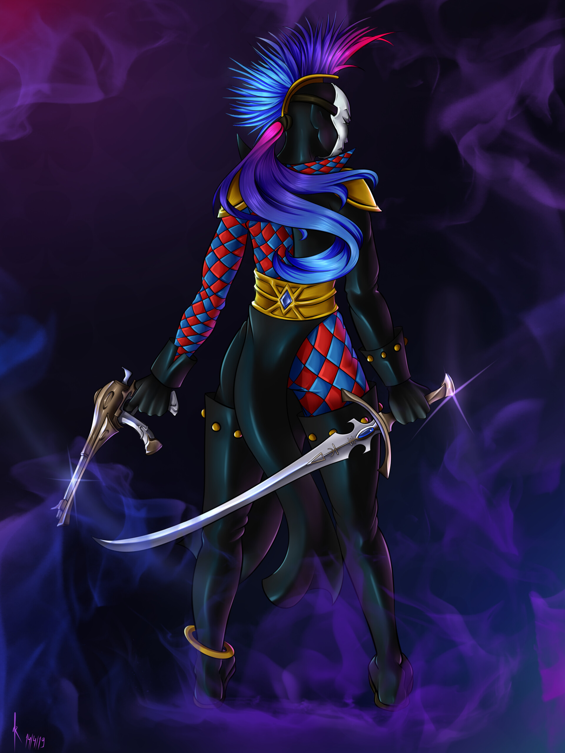 Силуэт оказался Шутом Смерти, маска которого представляла собой костлявое лицо, а костюм был усеян серебряными черепами. В руках она крутила и проворачивала небольшую косу, острое лезвие клинка сверкало в лучах света, исходившего от теневидицы. Арадриан испытал острое желание закричать, зная о том, что будет дальше. Его охватил страх, когда лезвие косы заблистало возле других арлекинов, проходя на волосок от их тел, в то время как Шут Смерти тайком пробирался по сцене, выбирая первую жертву. Предупреждение застряло в глотке странника, вокруг раздались испуганные, бессловесные вздохи зрителей, которые он едва слышал.