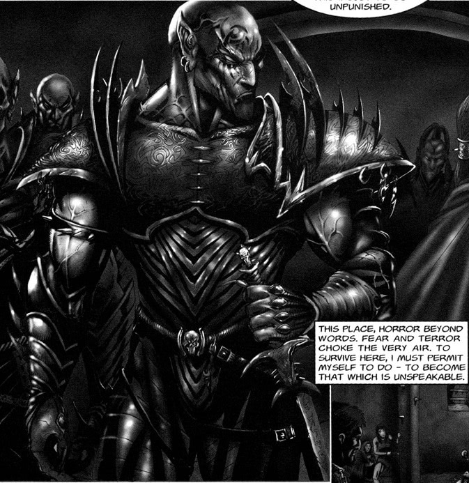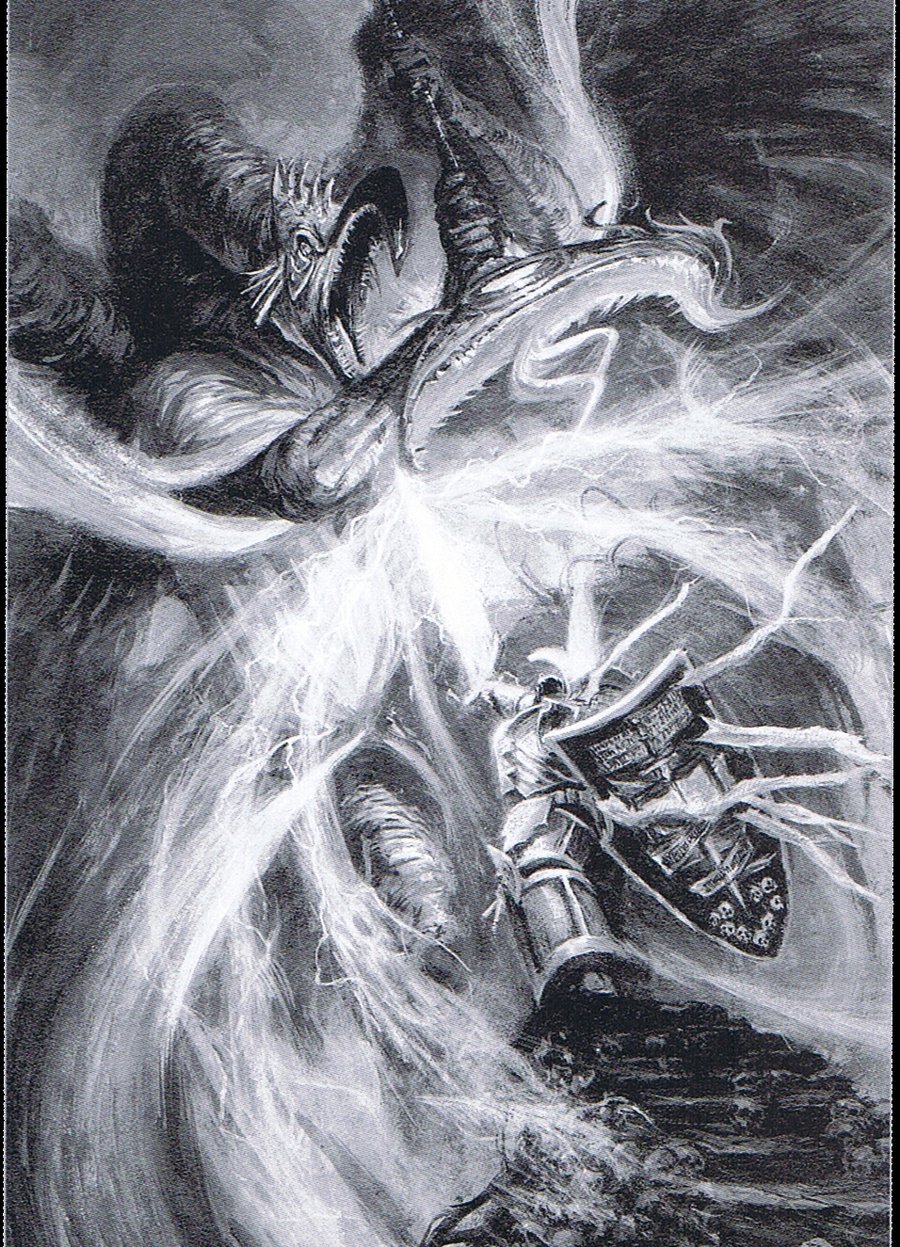 "Yriel plunged his spear deep into the rearing serpent. It keened terribly, and Yriel salivated as his weapon drank. Since the day he had lost his eye due to the spear feasting on the limitless hive mind, he had managed to control its fell power and its obscene appetites, but at this final pass he no longer had the strength, and the spear’s murderous soul overwhelmed him. He could not stop it feeding, drawing upon the infinity of spirit the Great Devourer possessed. Yriel felt the hive mind, heard it howl. It thrashed about, and Yriel was battered by its anger. Its thoughts were utterly, unimaginably alien. But one thing came through strong and loud. Hatred, hatred for this creature that had for the first time in untold eons wounded it."